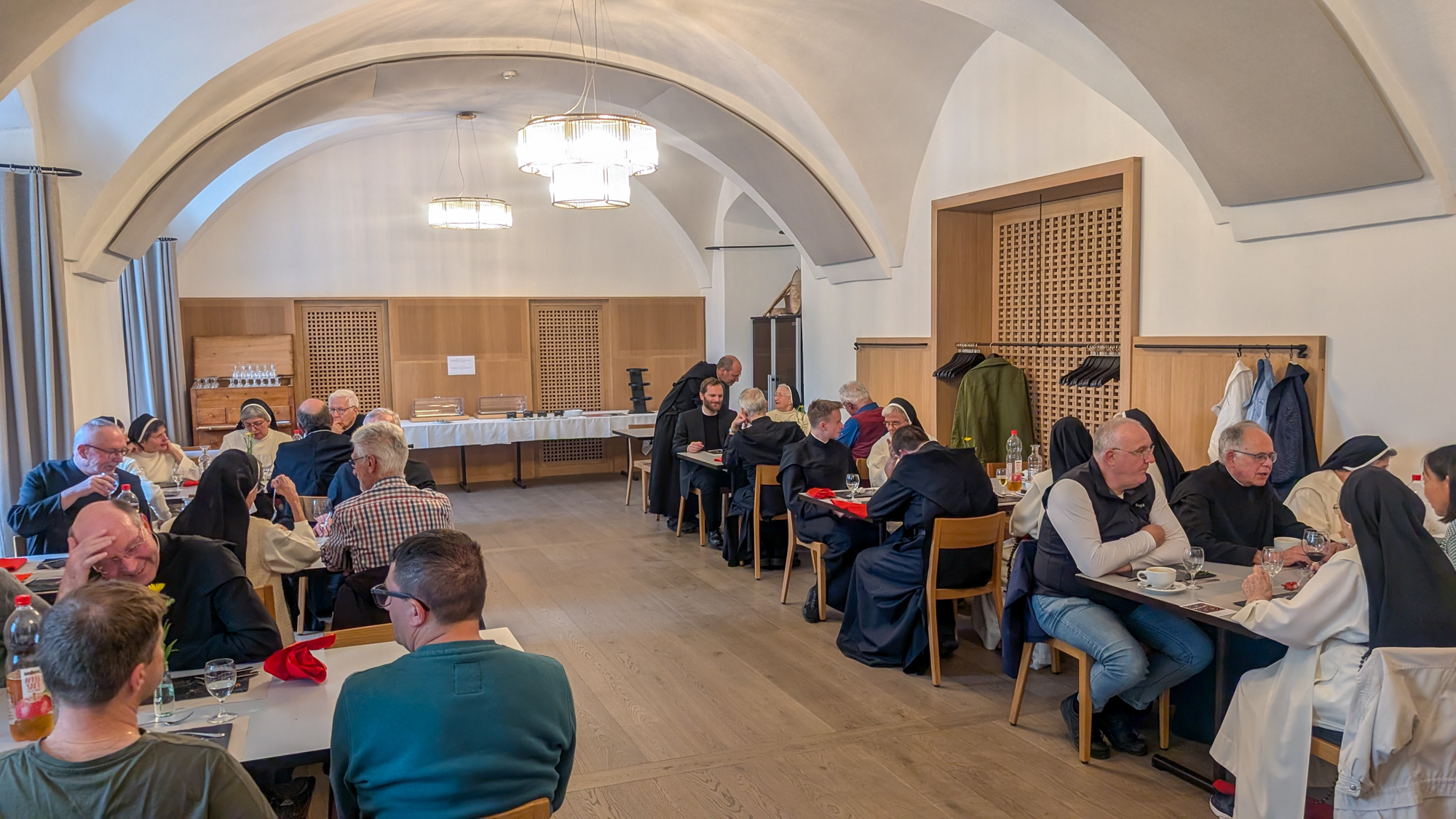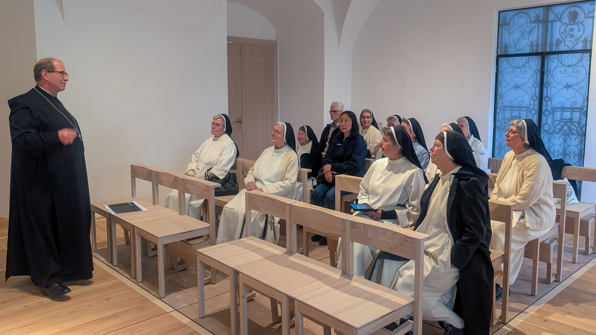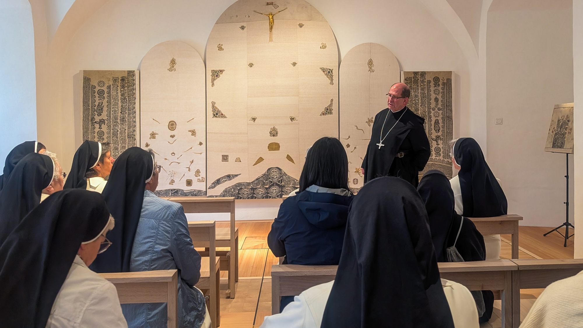 Gemeinsam mit Abt Vigeli besuchten die Gäste ausserdem die neu erstellte Anbetungskapelle des Klosters, wo Abt Vigeli den Aufbau und die Pläne zu der Kapelle sowie die Symboliken der bereits installierten Kunstwerke erklärte.