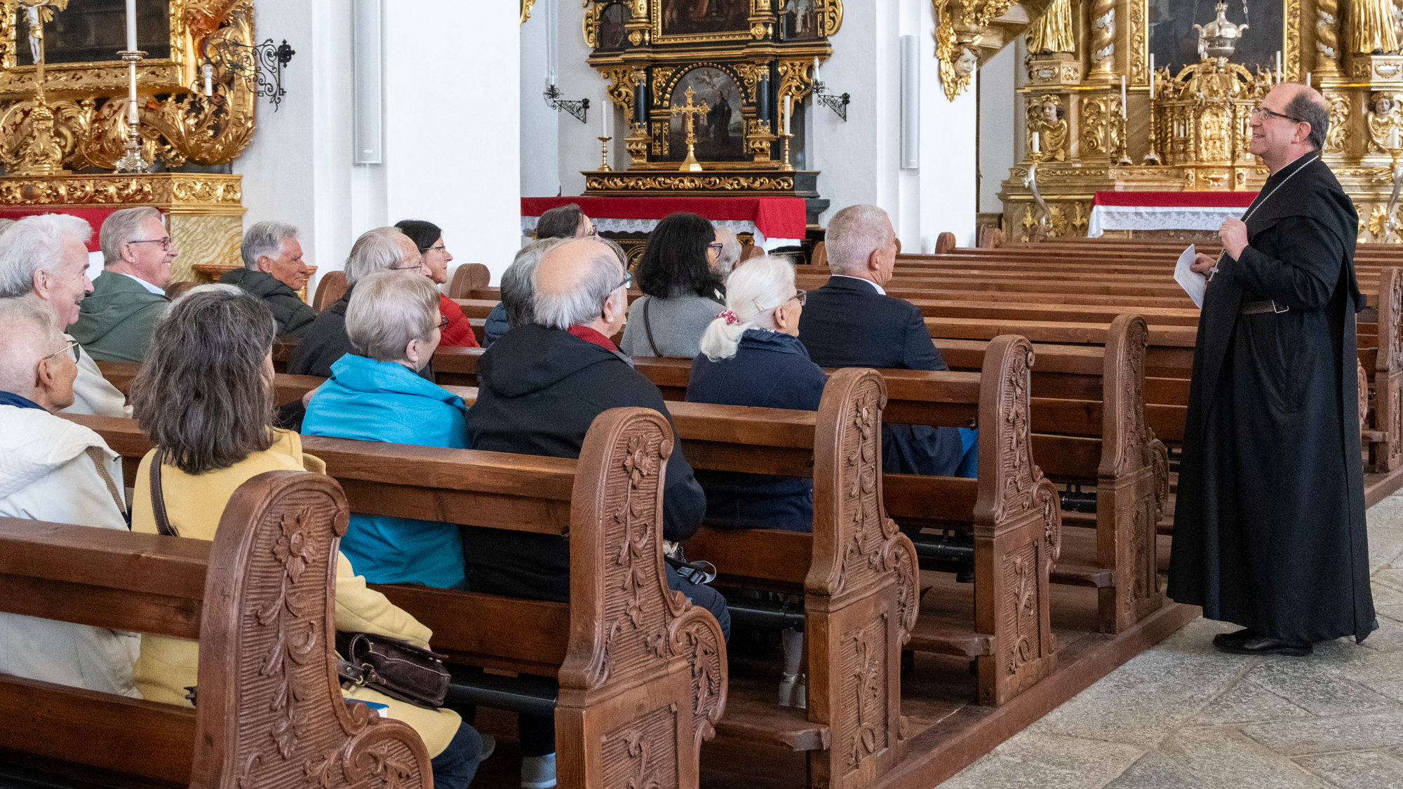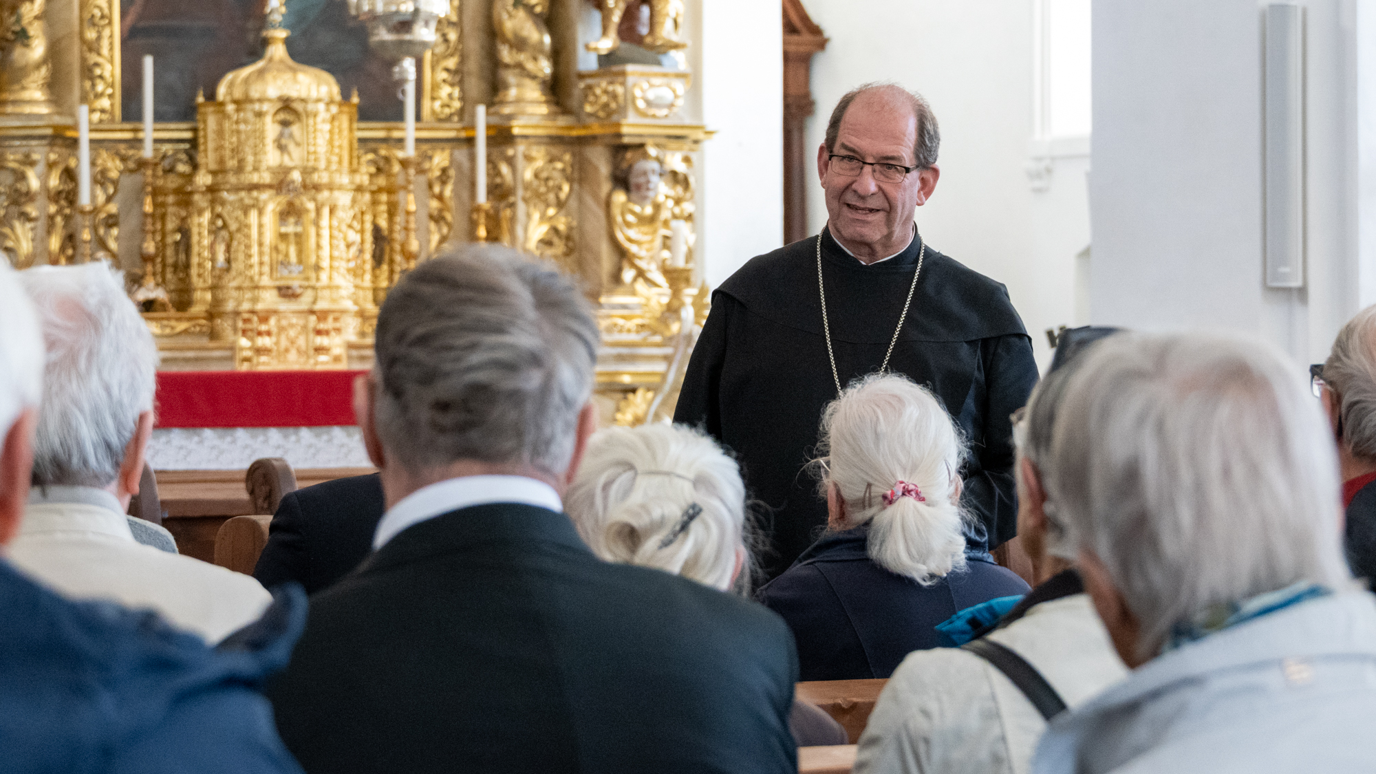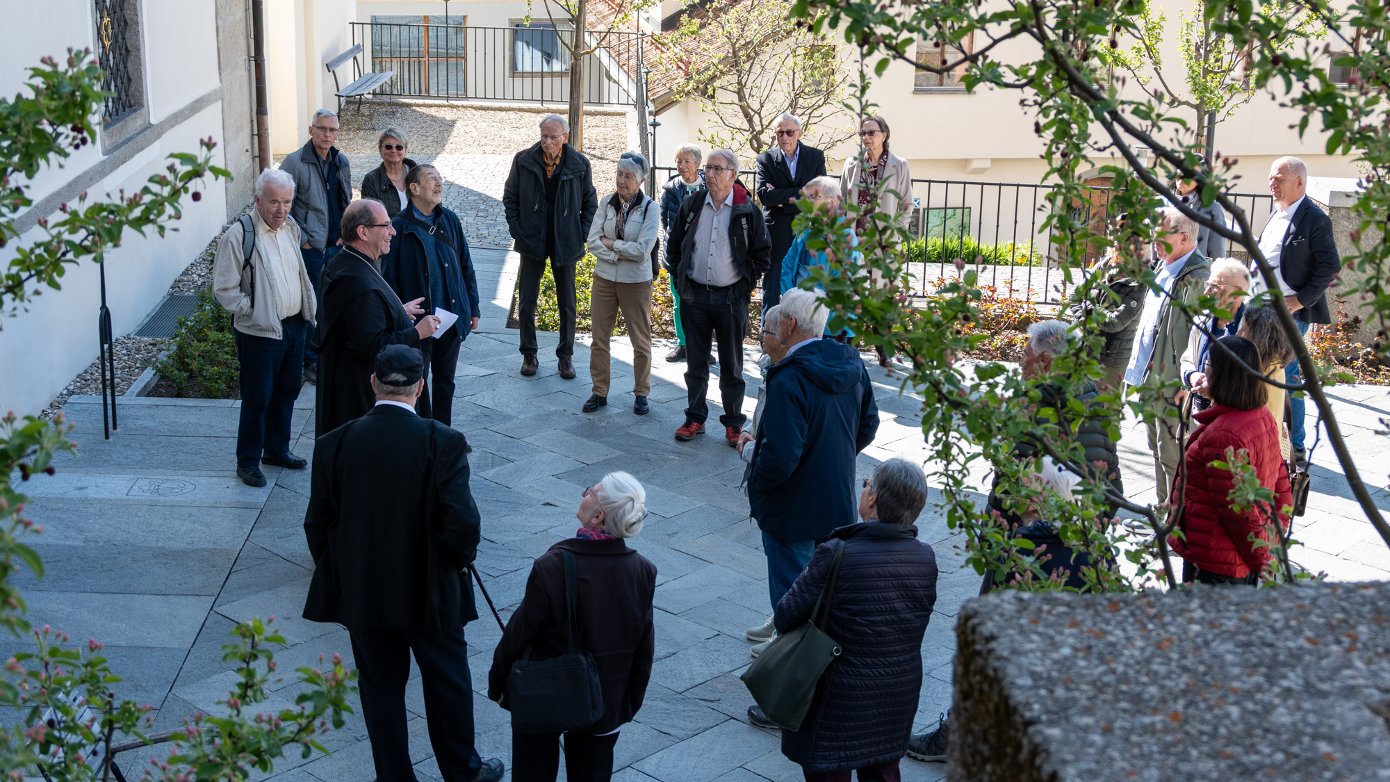 Mit grosser Freude durften wir in diesem Zusammenhang am Samstag Gönnerinnen und Gönner in unserem Kloster begrüssen, die sich im Rahmen einer Aktion der Stiftung zur Erhaltung schweizerischen Kulturgutes aus Luzern eingesetzt haben. Sie wurden von Abt Vigeli Monn empfangen, der sie nicht nur durch das Kloster führte, sondern den Gästen auch einen Blick hinter die Kulissen des aktuellen Bauprojektes gewährte, die Renovation der Mönchszellen im 3. und 4. Obergeschoss des Klosters.