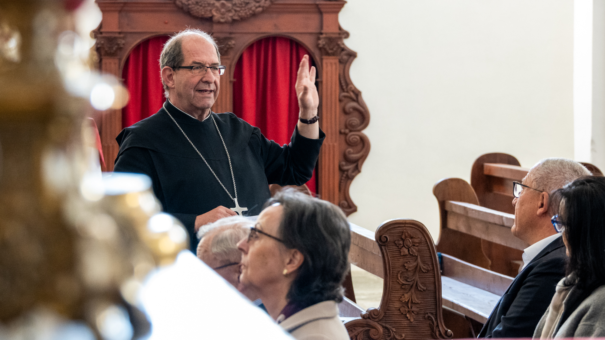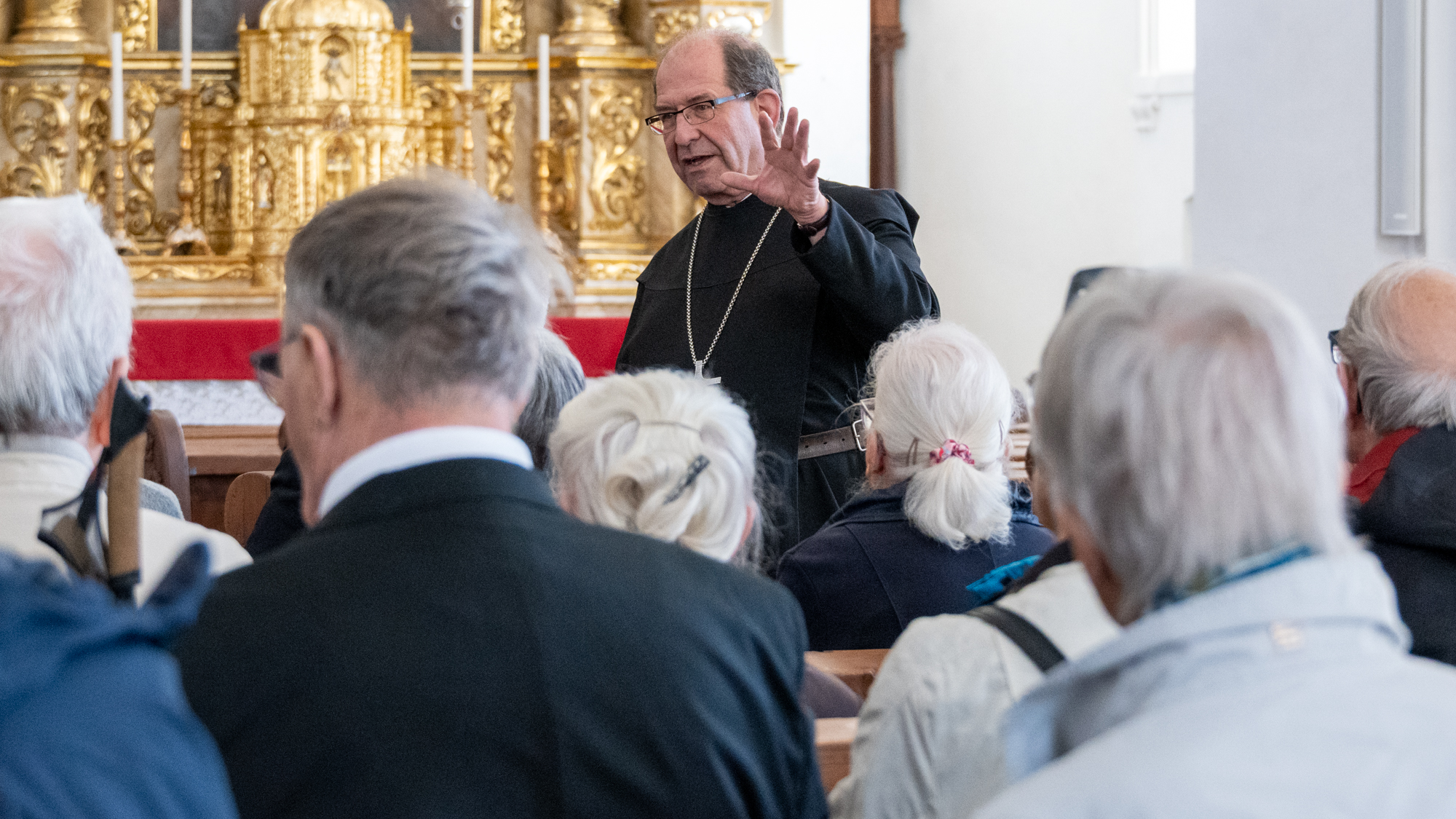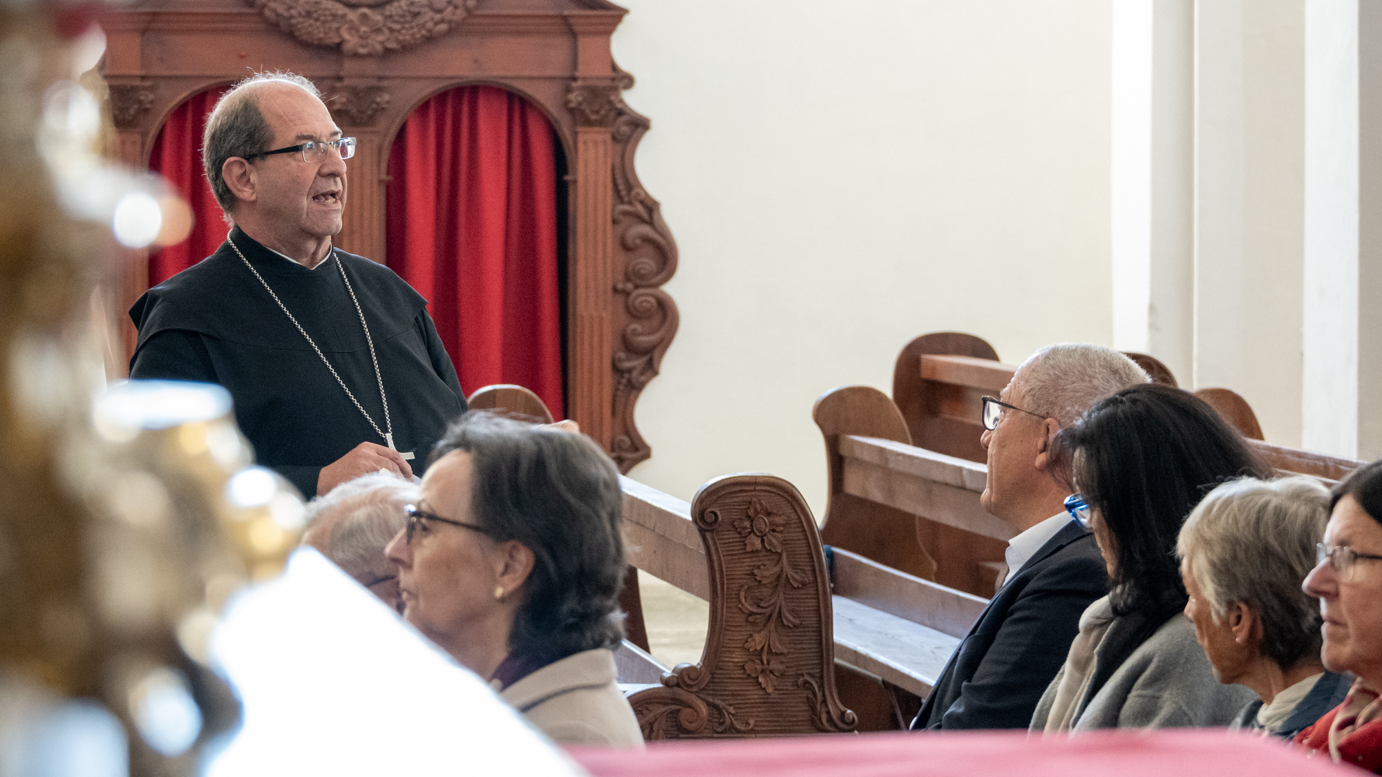 Mit grosser Freude durften wir in diesem Zusammenhang am Samstag Gönnerinnen und Gönner in unserem Kloster begrüssen, die sich im Rahmen einer Aktion der Stiftung zur Erhaltung schweizerischen Kulturgutes aus Luzern eingesetzt haben. Sie wurden von Abt Vigeli Monn empfangen, der sie nicht nur durch das Kloster führte, sondern den Gästen auch einen Blick hinter die Kulissen des aktuellen Bauprojektes gewährte, die Renovation der Mönchszellen im 3. und 4. Obergeschoss des Klosters.