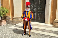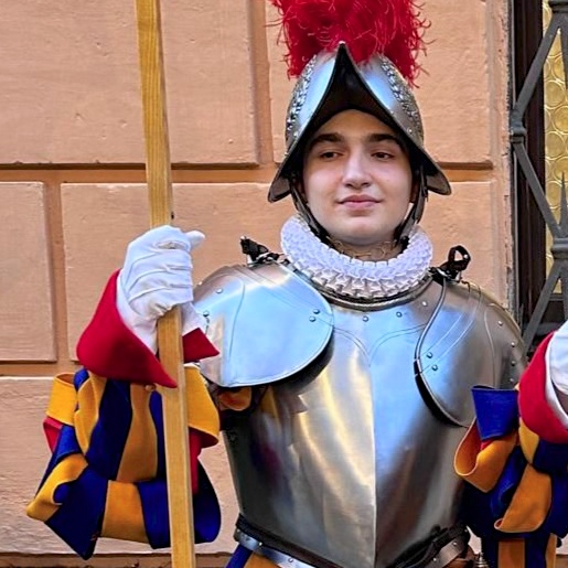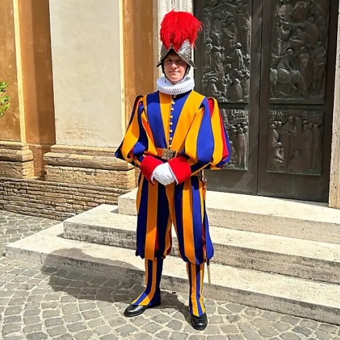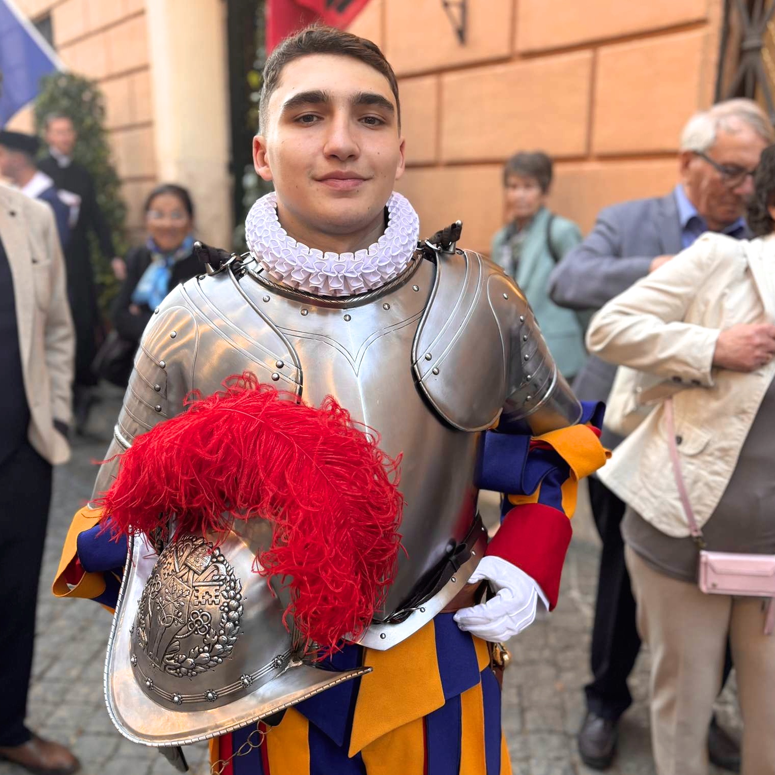 Carlo Frey leistet schon seit dem 1. Januar Dienst in der Garde – zunächst aber lediglich in Form von Ordnungsaufgaben. Zuvor hatte er in der Schweiz seine militärische Rekrutenschule absolviert, wie das Bedingung ist für die Aufnahme in die päpstliche Leibgarde.