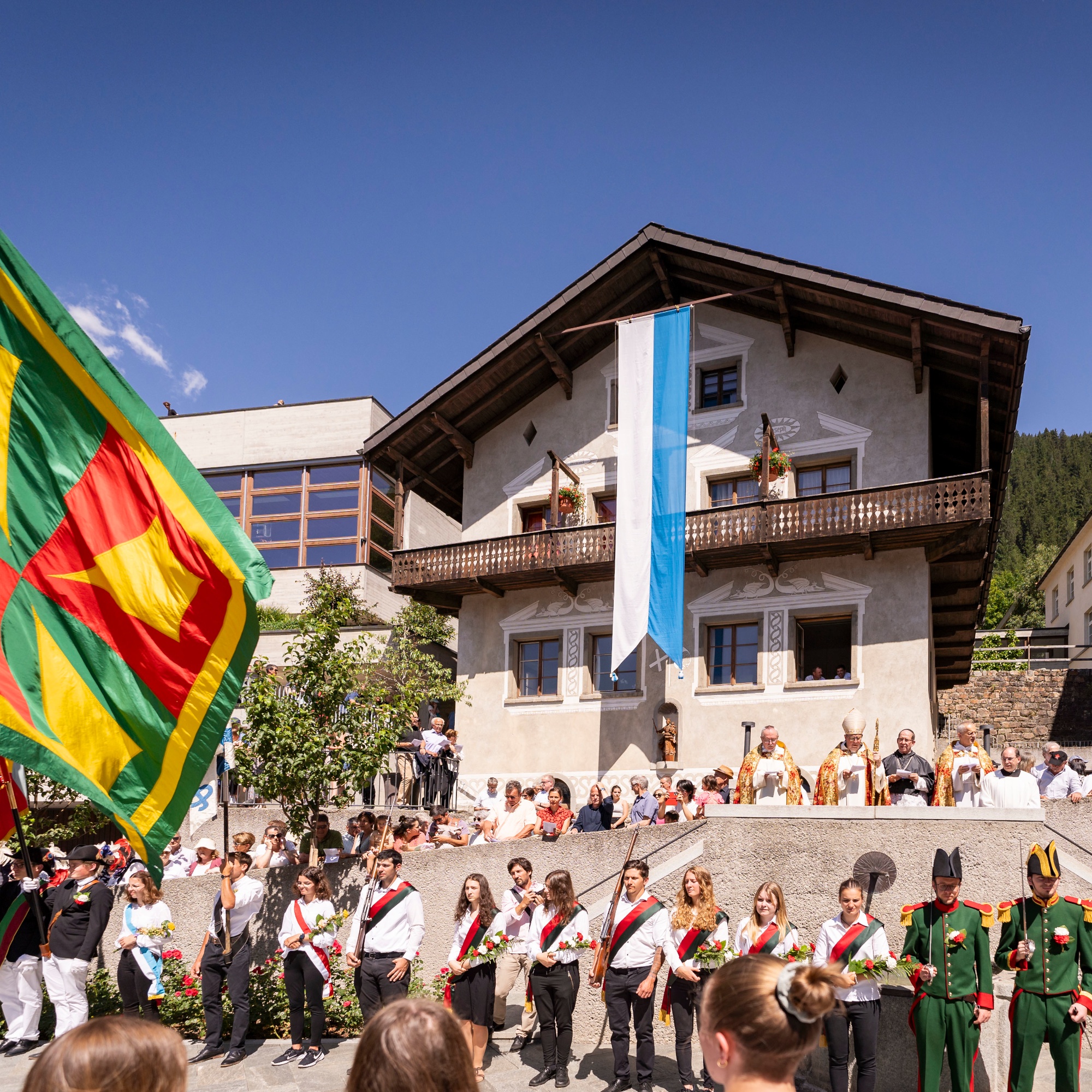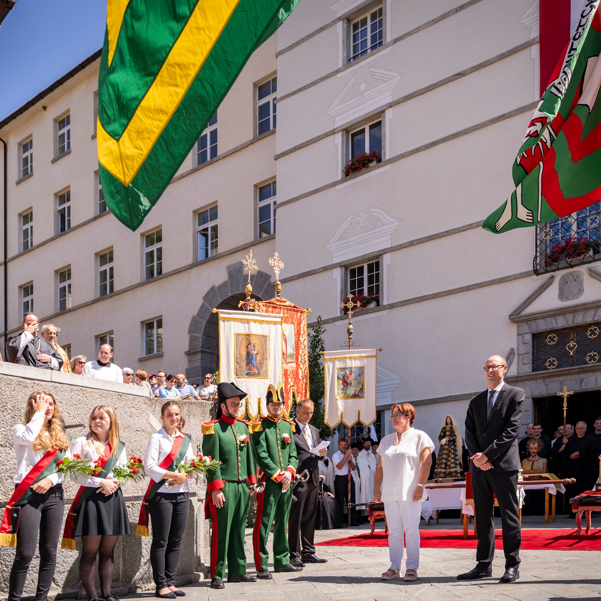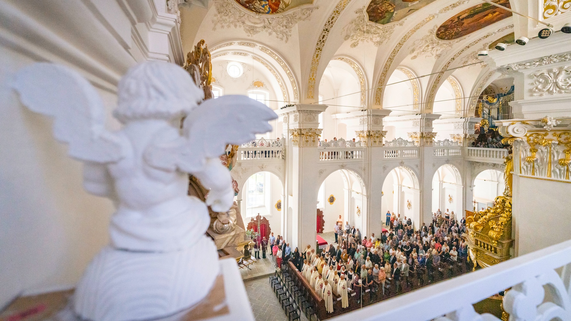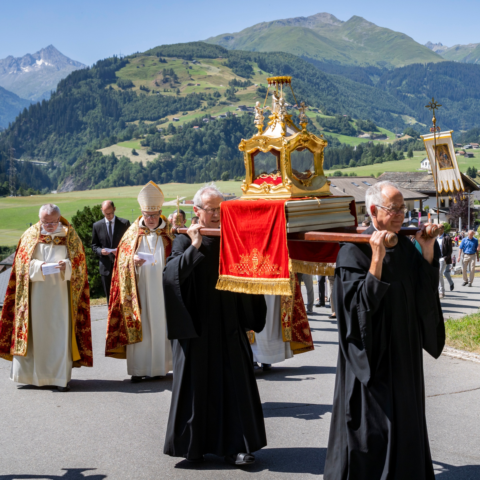Mit einer grossen Zahl Gäste durften wir heute die äussere Feier zum Hochfest unserer Klostergründer Placidus und Sigisbert mit Pontifikalamt und Prozession zelebrieren. Es war uns eine Ehre, zahlreiche Gäste aus dem Dorf, aus der Region, dem Kanton und aus der ganzen Schweiz bei uns begrüssen zu dürfen.