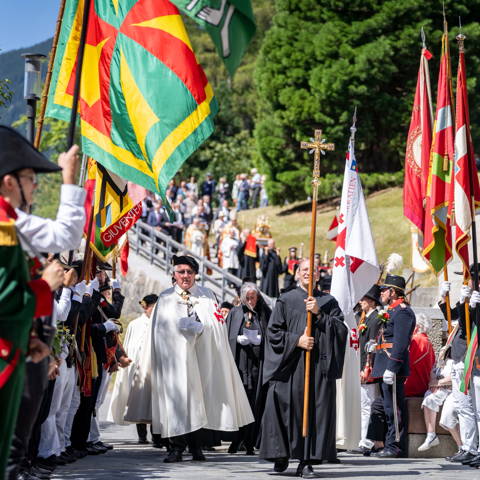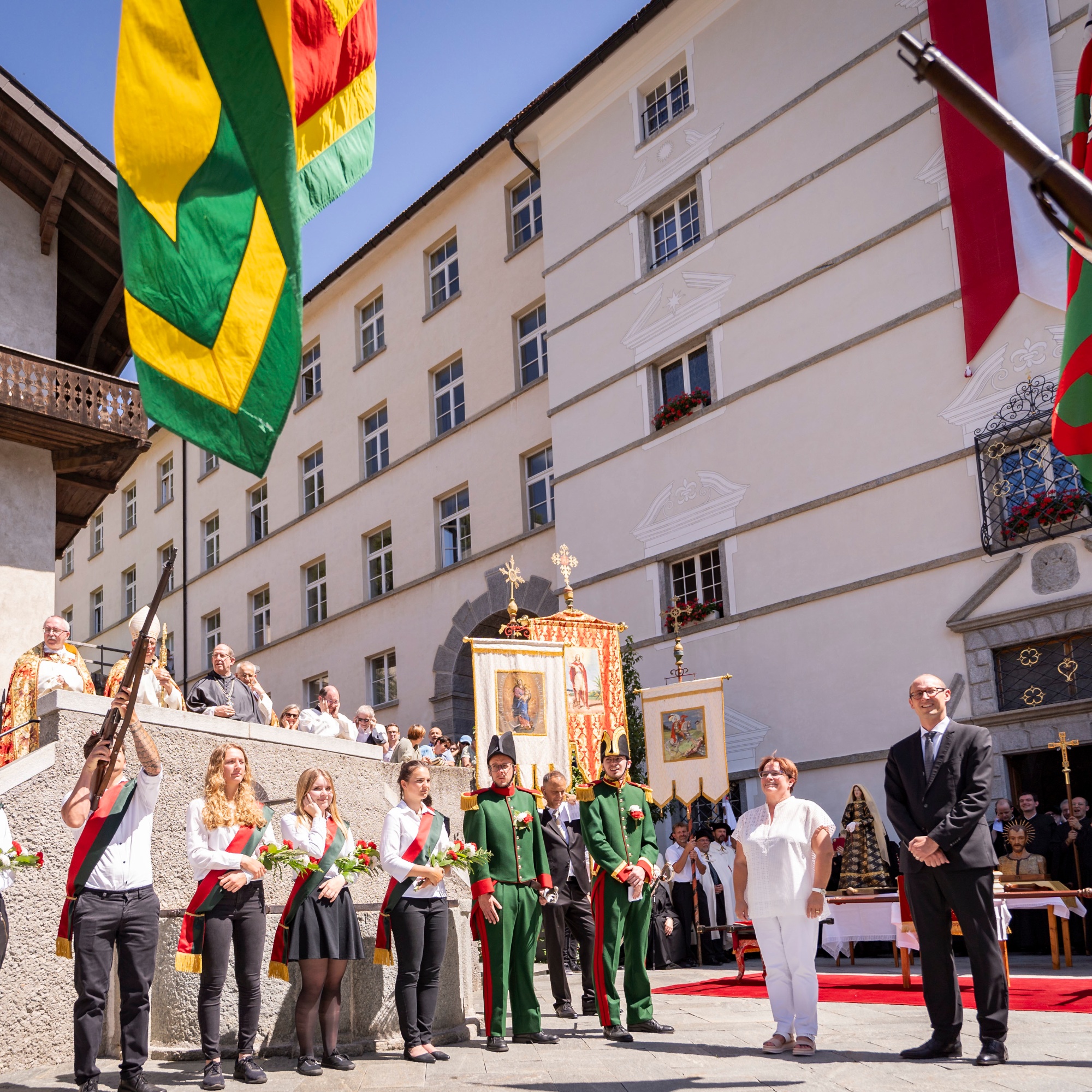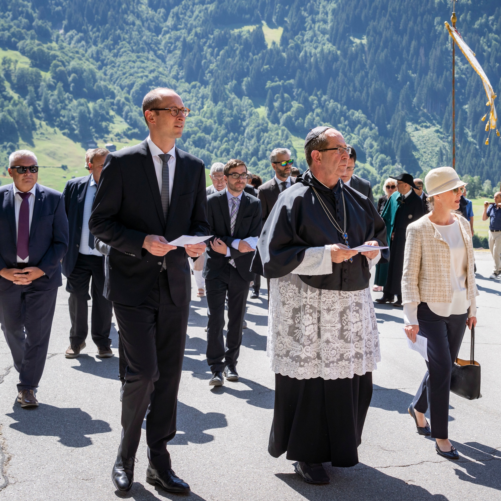 Mit einer grossen Zahl Gäste durften wir heute die äussere Feier zum Hochfest unserer Klostergründer Placidus und Sigisbert mit Pontifikalamt und Prozession zelebrieren. Es war uns eine Ehre, zahlreiche Gäste aus dem Dorf, aus der Region, dem Kanton und aus der ganzen Schweiz bei uns begrüssen zu dürfen.