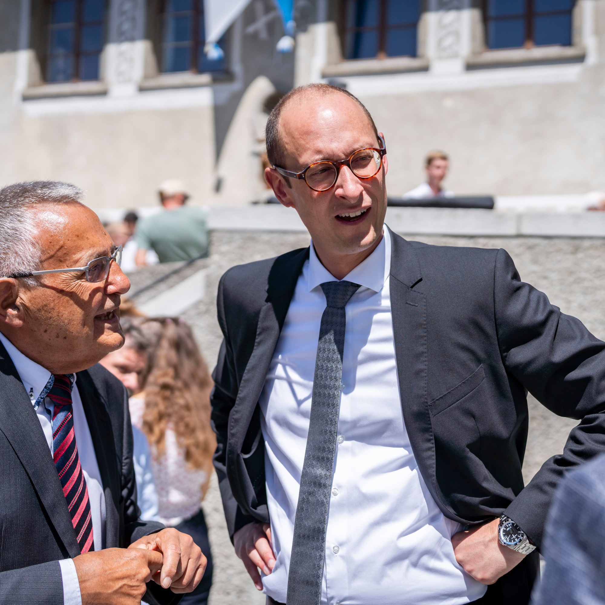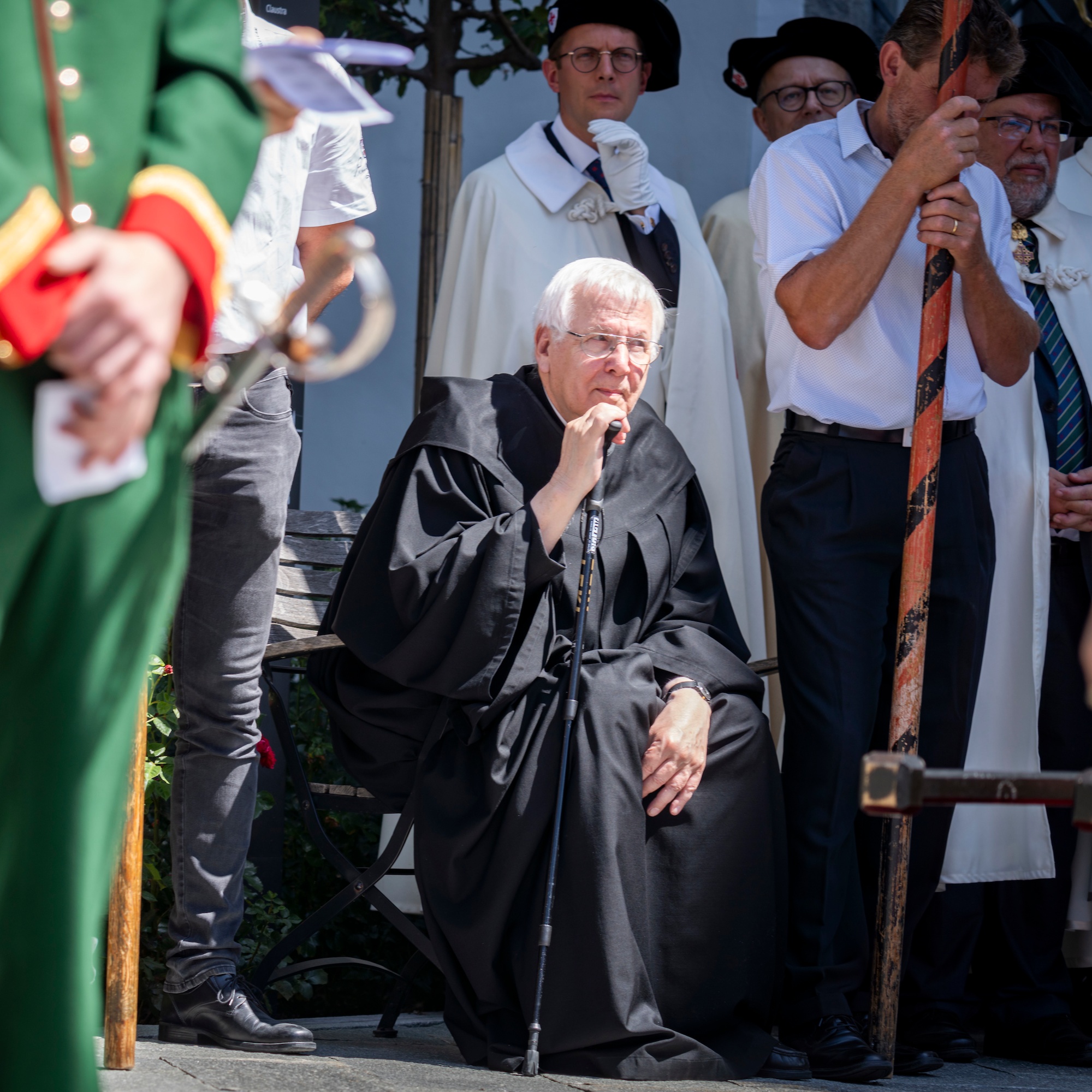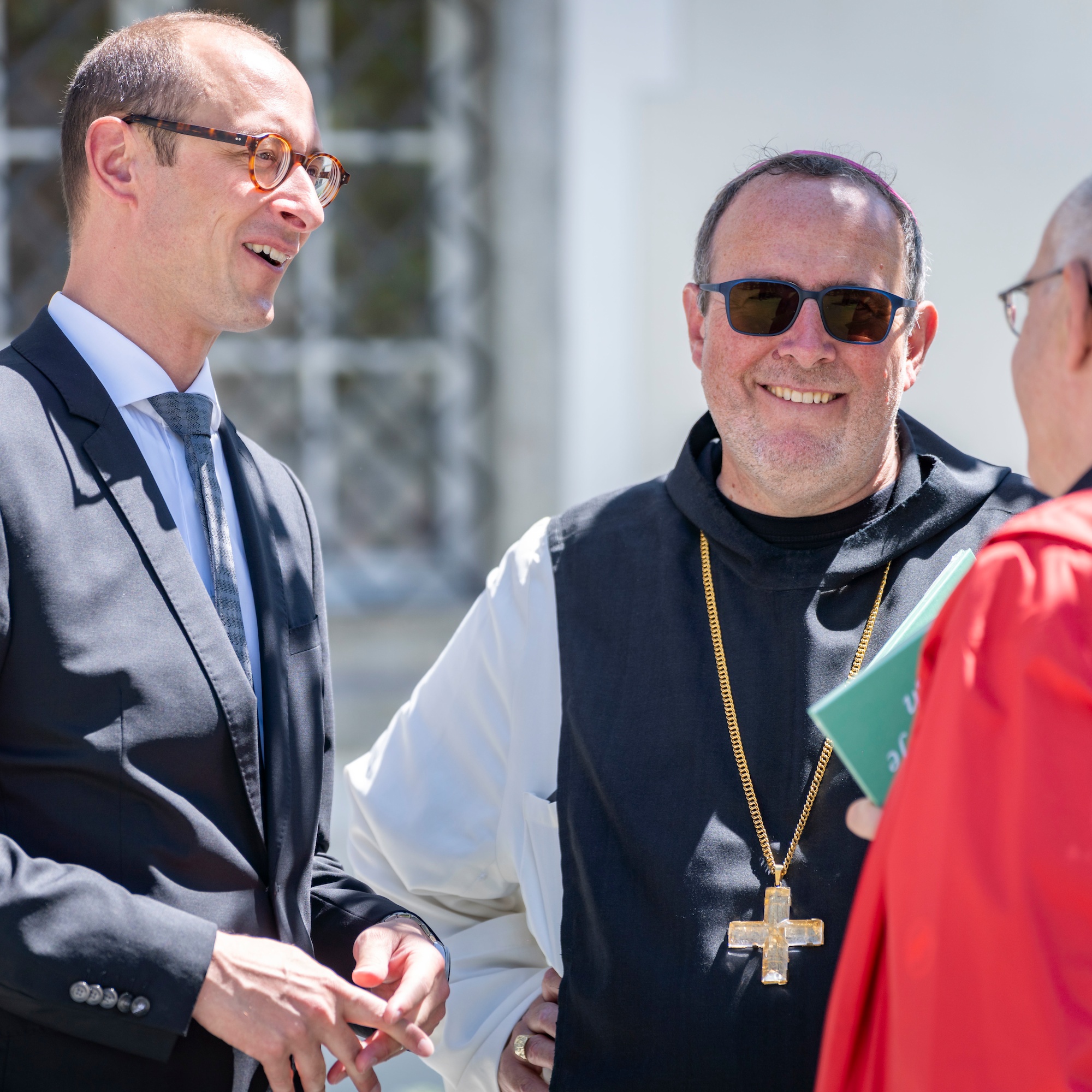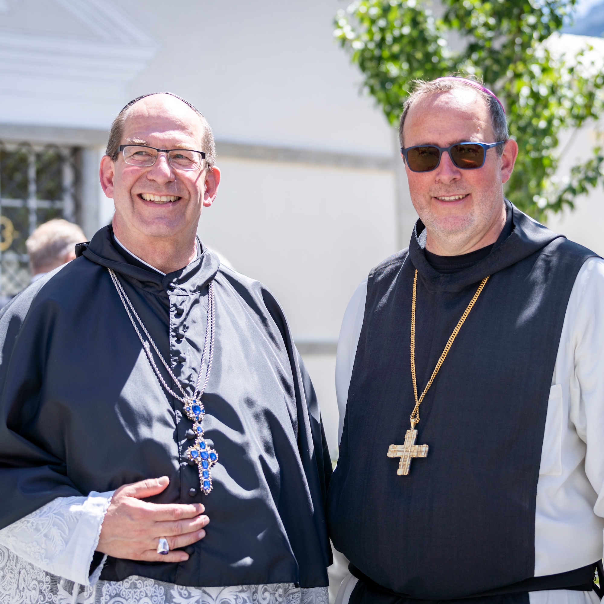 Mit einer grossen Zahl Gäste durften wir heute die äussere Feier zum Hochfest unserer Klostergründer Placidus und Sigisbert mit Pontifikalamt und Prozession zelebrieren. Es war uns eine Ehre, zahlreiche Gäste aus dem Dorf, aus der Region, dem Kanton und aus der ganzen Schweiz bei uns begrüssen zu dürfen.