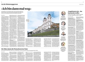 «Er entschied sich für eine Woche Disentis. Und zwar im Kloster. Es bietet unter dem Motto «Ich bin dann mal weg» Kloster auf Zeit an. Pfister kennt das Kloster Disentis von früher: Er hat dort die Matura absolviert. «Nach dem Wahljahr und dem Endspurt für die erfolgreiche Einreichung der beiden Iniitiativen», betont er, «musste ich zur Ruhe kommen.»»