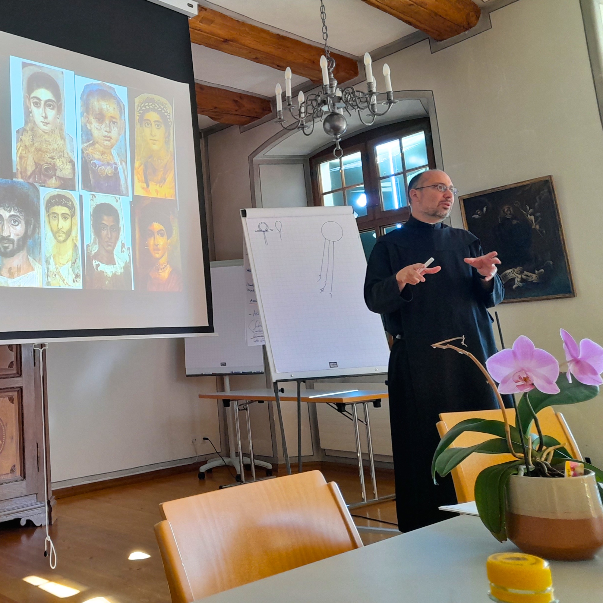 Ausgehend von der Schöpfungsgeschichte und der Erschaffung des Menschen als Abbild Gottes ging es im Rahmen der Junioratswoche auf einen Weg durch die gesamte Menschheitsgeschichte von der prähistorischen Epoche über Antike und Neuzeit bis in die Gegenwart. «Auf eindrückliche Art und Weise wurde uns dabei bewusst, wie jedes Kunstwerk zwar Zeuge seiner eigenen Zeit ist, weil es einfach einer bestimmten Epoche und einem bestimmten Stil angehört, aber gleichzeitig diese zeitliche Begrenztheit auch überwinden kann, sofern sich der Künstler an der ewigen, göttlichen Wahrheit orientiert», sagt Bruder Michael. «Ein beeindruckendes Beispiel dafür sind die Mumienporträts von Fayum, die ganz normale Menschen aus der frühchristlichen Antike darstellen. Sie bringen damit eine Epoche, die sonst vor allem durch Kaiserporträts bekannt ist, durch ein menschliches Antlitz auch uns heutigen Menschen ein Stück weit näher.»