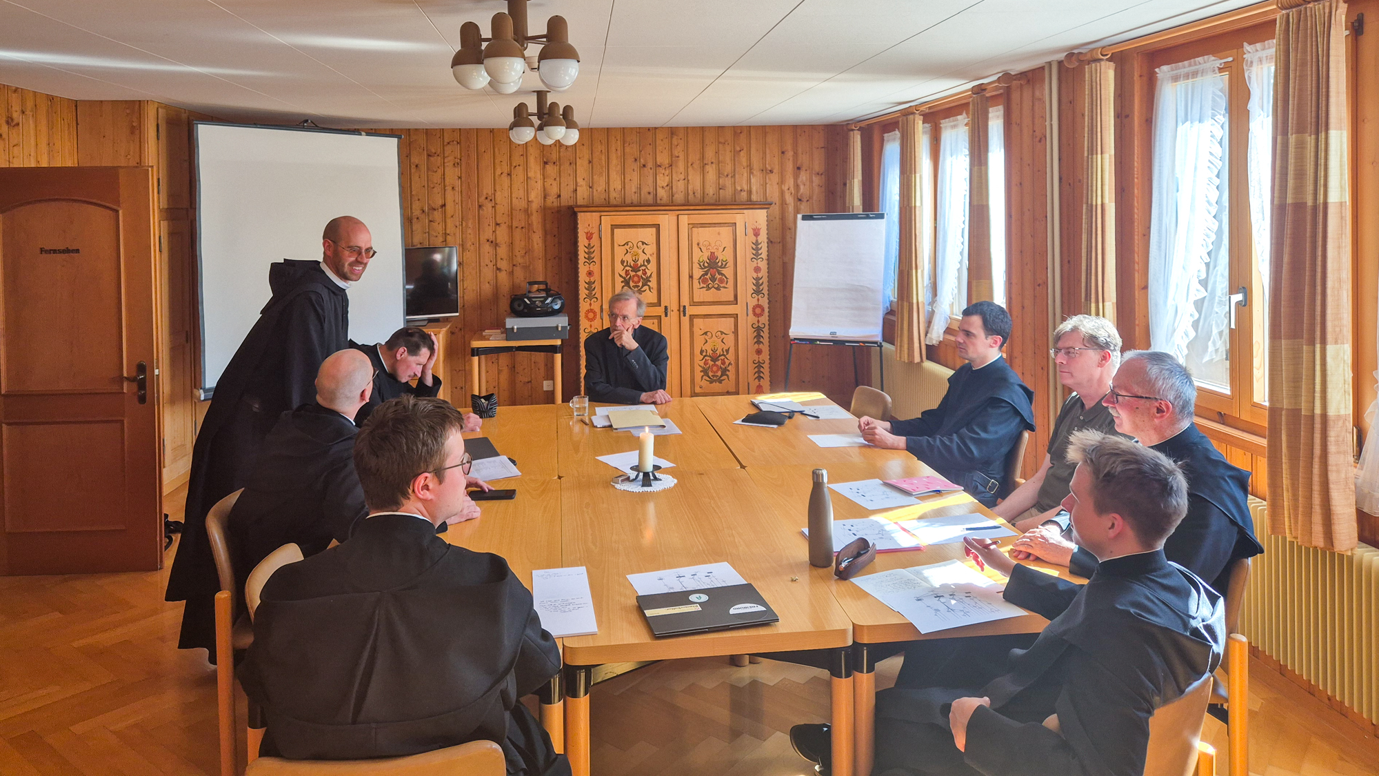 Teilnehmer waren drei Brüder aus Einsiedeln, sechs Brüder aus Disentis sowie der Disentiser Novizenmeister Pater Bruno Rieder und der Novizenmeister Pater Urs Maria Stadelmann vom Kloster Marienberg als Ausbildungskoordinator der Schweizerischen Benediktinerkongregation. Die Tage waren geprägt durch den Rhythmus von Gebet, Arbeitseinheiten, Mahlzeiten und abendlichem Beisammensein, wie der Disentiser Kandidat Bruder Joshua Kolz berichtet.