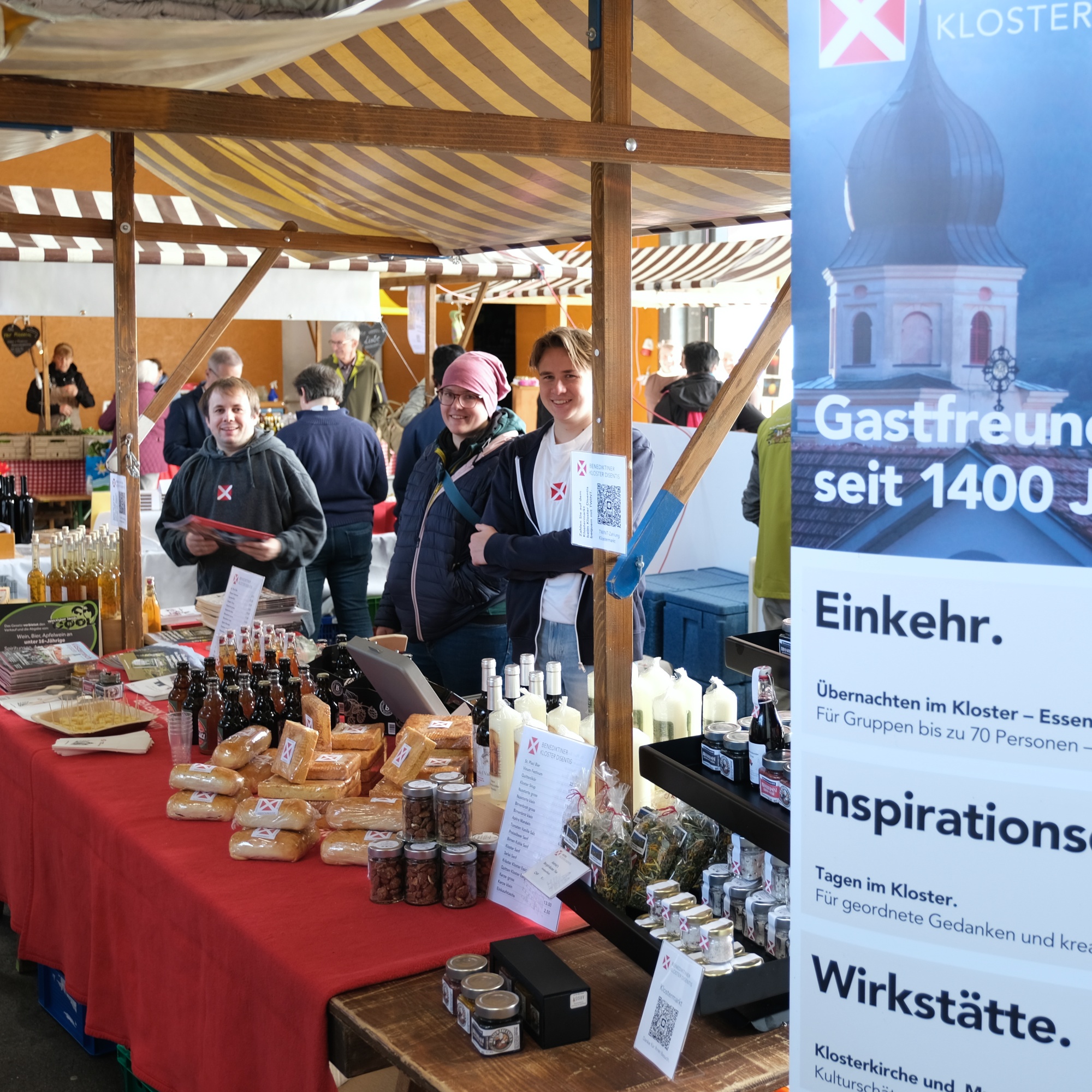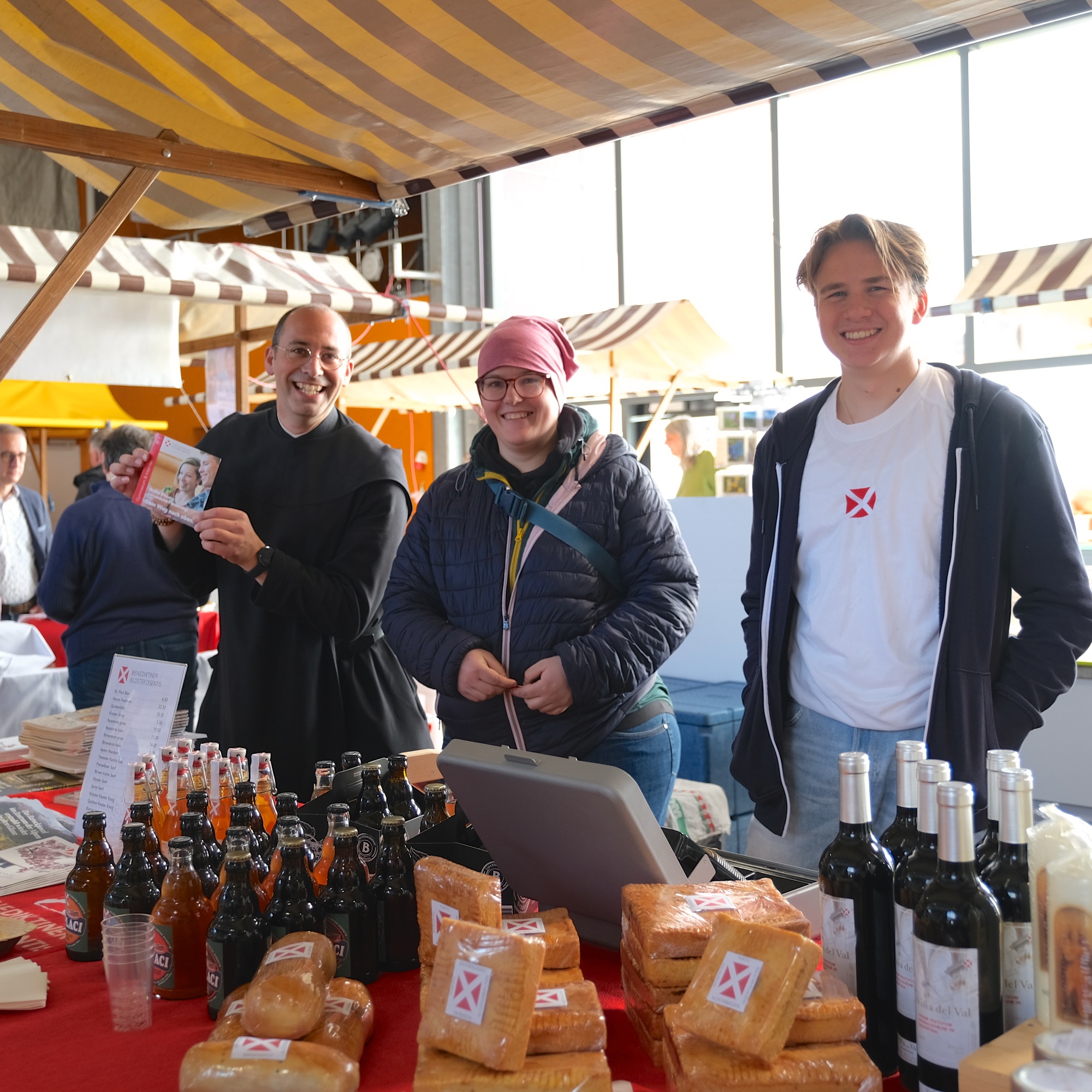 Er betreute den Klosterstand bei der 16. Auflage des Klostermarkts, der in der Markthalle Gossau stattfindet. Insgesamt waren sieben Klöster und Ordensgemeinschaften auf dem traditionellen Markt vertreten. Bruder Martin, der von drei jungen Hilfen unterstützt wurde, hatte fast das gesamte Portfolio der klösterlichen Produkte im Gepäck. So gab es unter anderem Klostersenf, Klosterbier, Essig, Wein, Tee und natürlich die schon legendären Backwaren wie Birnenbrot und die Nusstorte von Bruder Gerhard Alig.