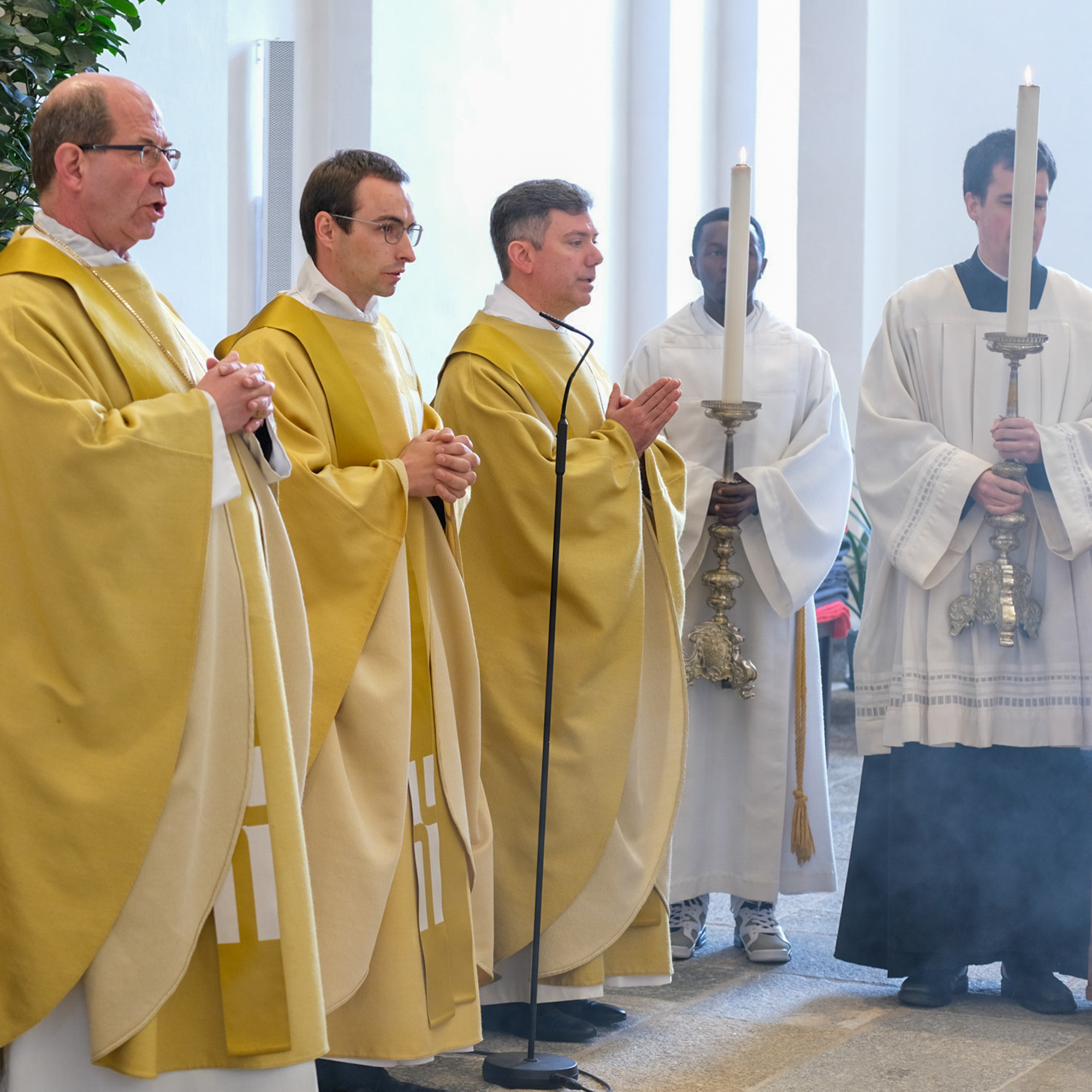 „Ich will dem HERRN singen in meinem Leben, meinem Gott singen und spielen, solange ich da bin.“ (Ps 104,33) Dieser hymnische Vers stammt aus Ps 104. Wir hörten ihn vorhin zwischen beiden Lesungen. Passt er nicht, lieber Pater Murezi, zu Deiner Lebensform als Mönch? Und passt er nicht erst recht zum heutigen Tag? Aus verschiedenen Ländern sind wir hier zusammengekommen, um miteinzustimmen in Deinen neupriesterlichen Lobpreis, um Gott zuzujubeln in dieser ersten von Dir vorgestandenen Eucharistiefeier. Wir wollen Gott danken, und zwar zuallererst für das Geschenk Deiner Berufung an diesen herrlichen Ort der Schöpfung. Ich bin angereist von der flachen Ruhr, dem deutschen Zufluss des Rheins, und darf hier entdecken, wie wunderschön die Gebirgsgegend am Quell des Hauptflusses ist. „Du lässt Quellen sprudeln in Bäche, sie eilen zwischen den Bergen dahin. (...) Du tränkst die Berge aus deinen Kammern, von der Frucht deiner Werke wird die Erde satt.“ (Ps 104,10.13)