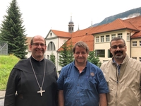 Auf dem Bild sehen Sie Abt Vigeli, Hanspeter Müller-Drossaart und Alberto Palaia (OK-Präsident Festspiel).