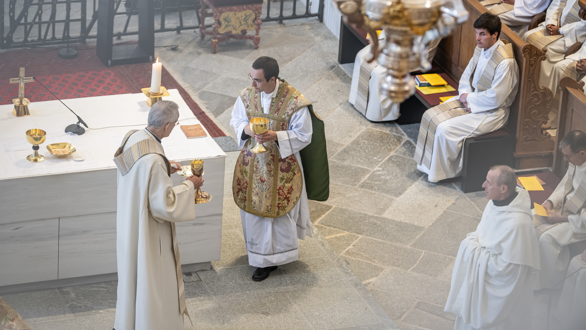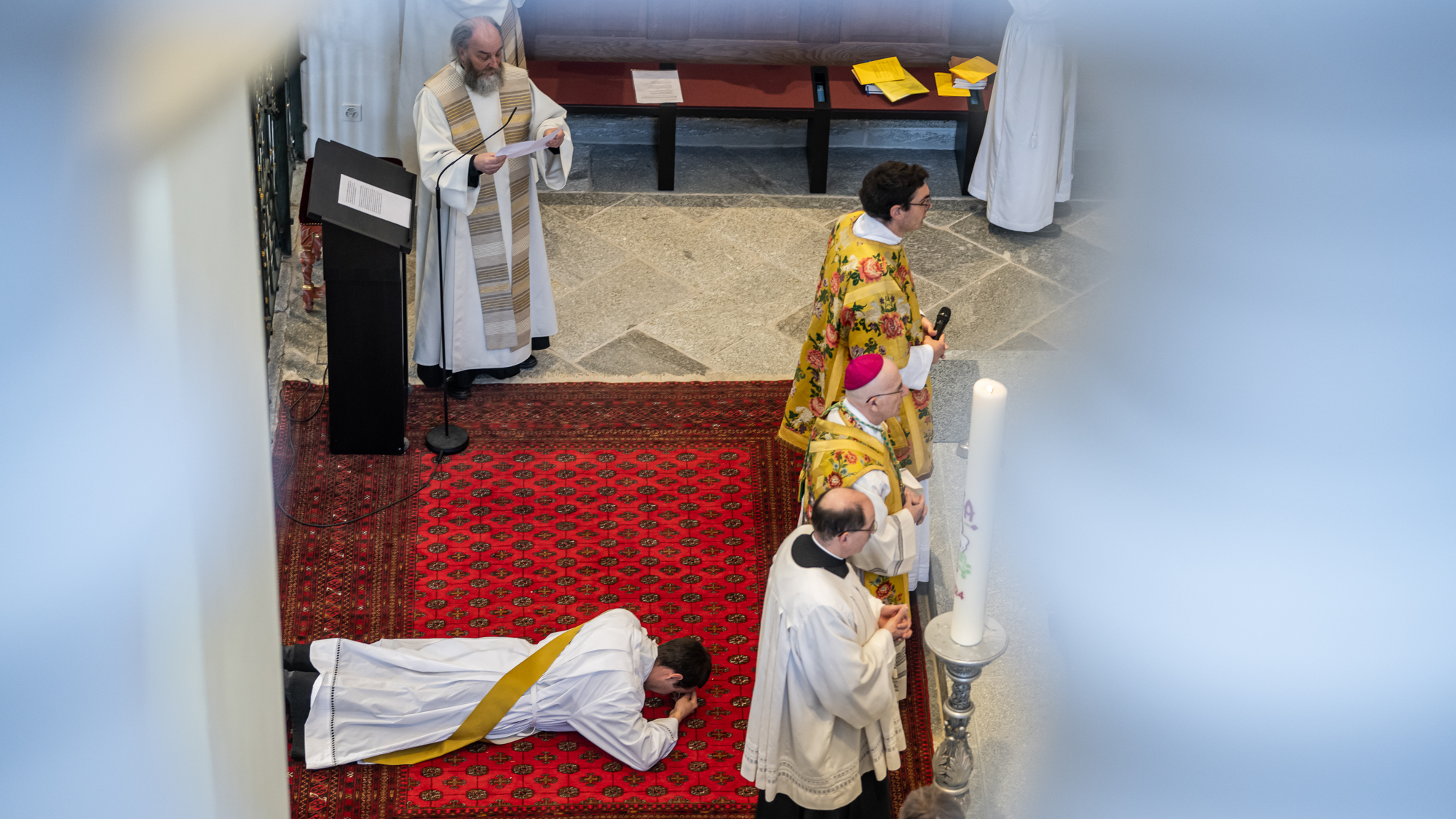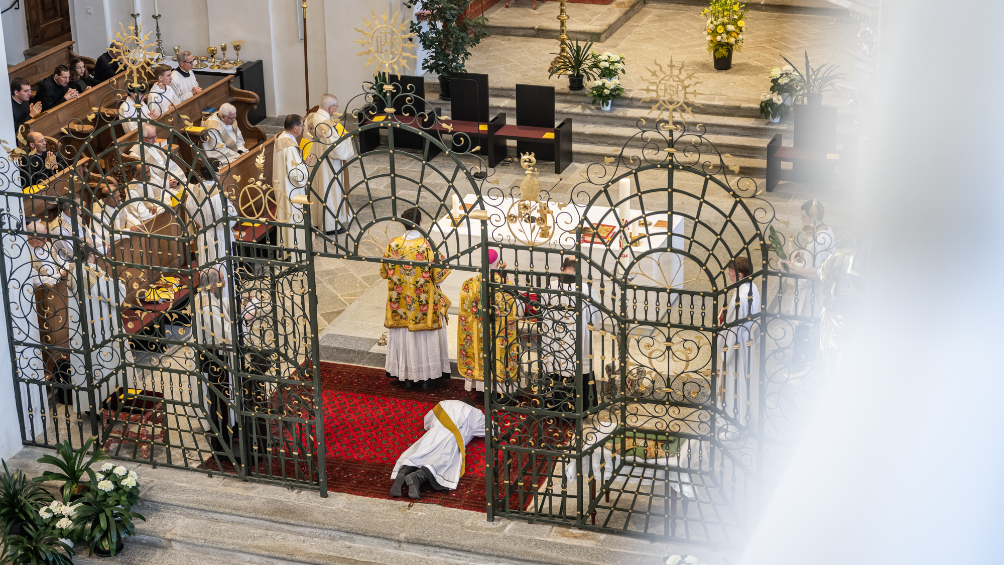 Die letzte Priesterweihe im Kloster Disentis war am 7. Dezember 2018 die Feier für und mit Pater Paul Tobler, der damals in der Kirche Sogn Gions ordiniert wurde.