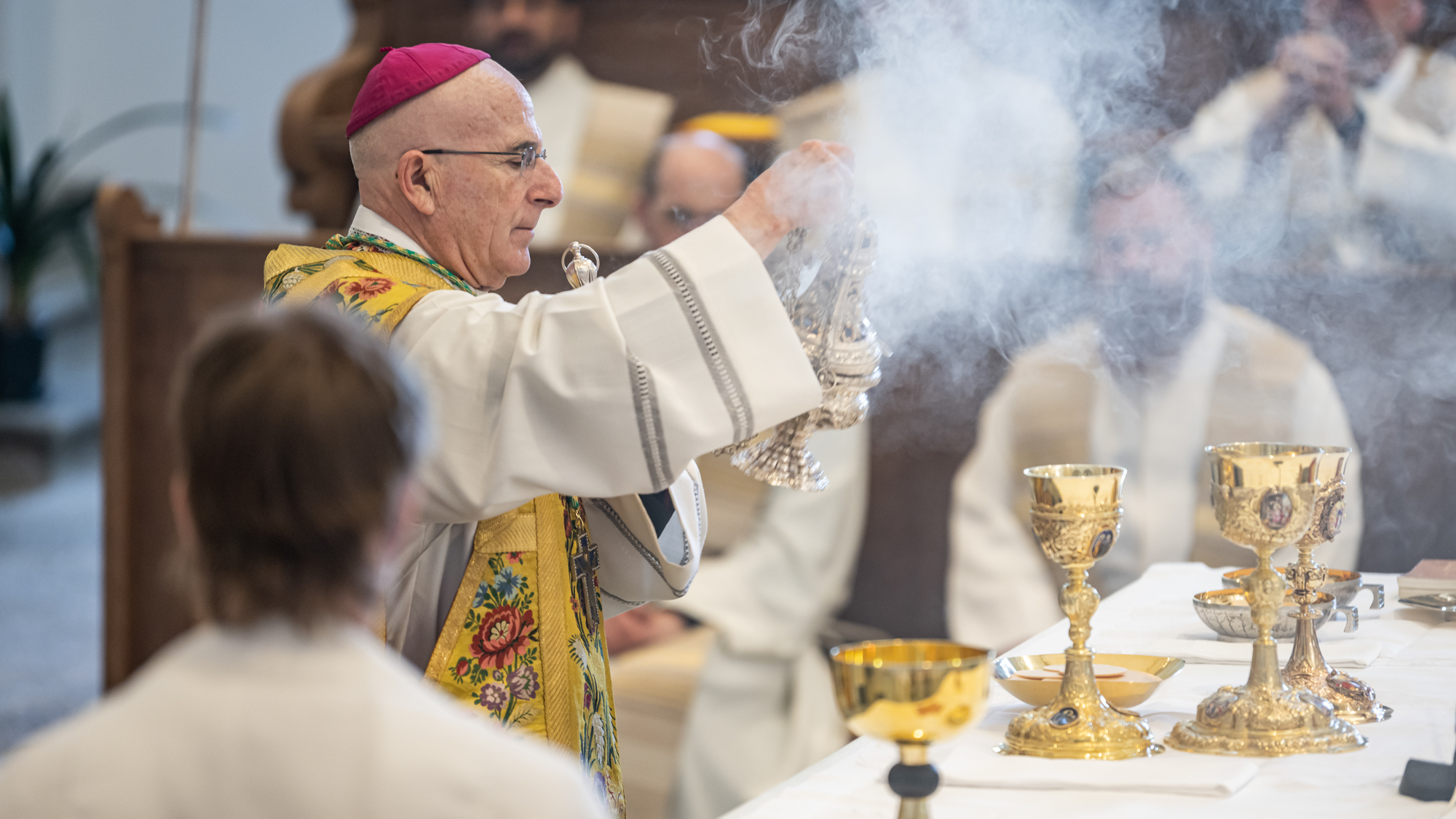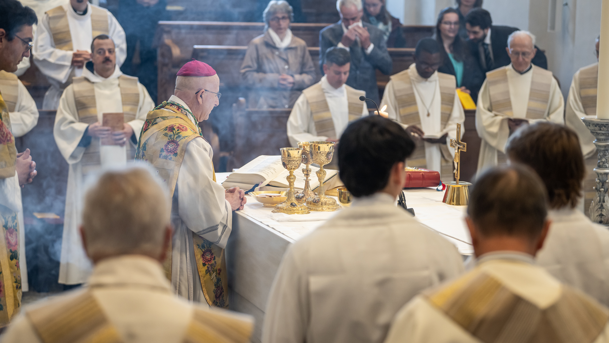 «Und sie liessen nicht ab, Tag für Tag im Tempel und in den Häusern zu lehren, und verkündeten das Evangelium von Jesus, dem Christus», zitierte Bischof Joseph Maria Bonnemain in seiner Festpredigt aus der Apostelgeschichte und ergänzte: «Die Lage damals war nicht einfacher für die Botschaft des Evangeliums als heute, aber sie waren – getragen vom Heiligen Geist – restlos davon überzeugt, das weiterzugeben, was das menschliche Herz im Tiefsten sehnsüchtig erwartet. D - deswegen liessen sie nicht davon ab.»