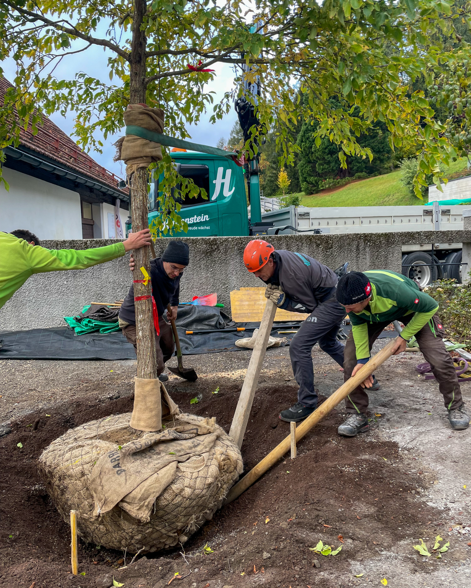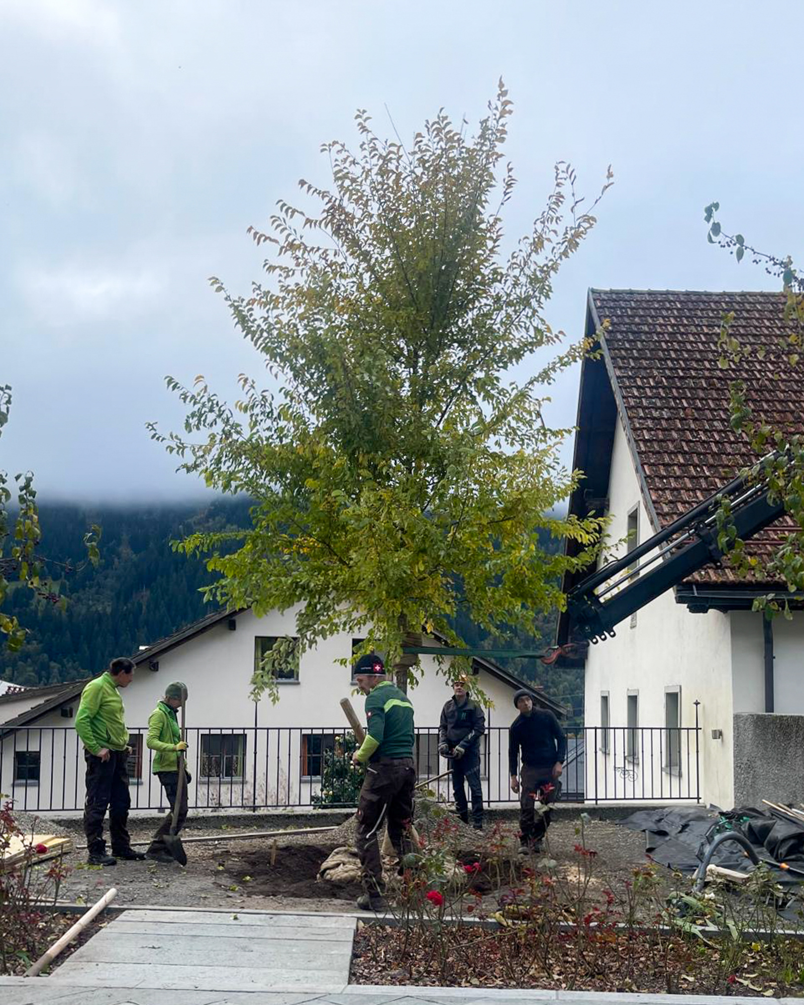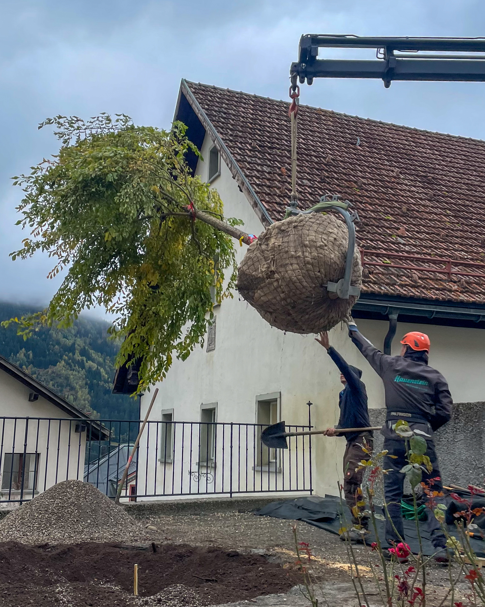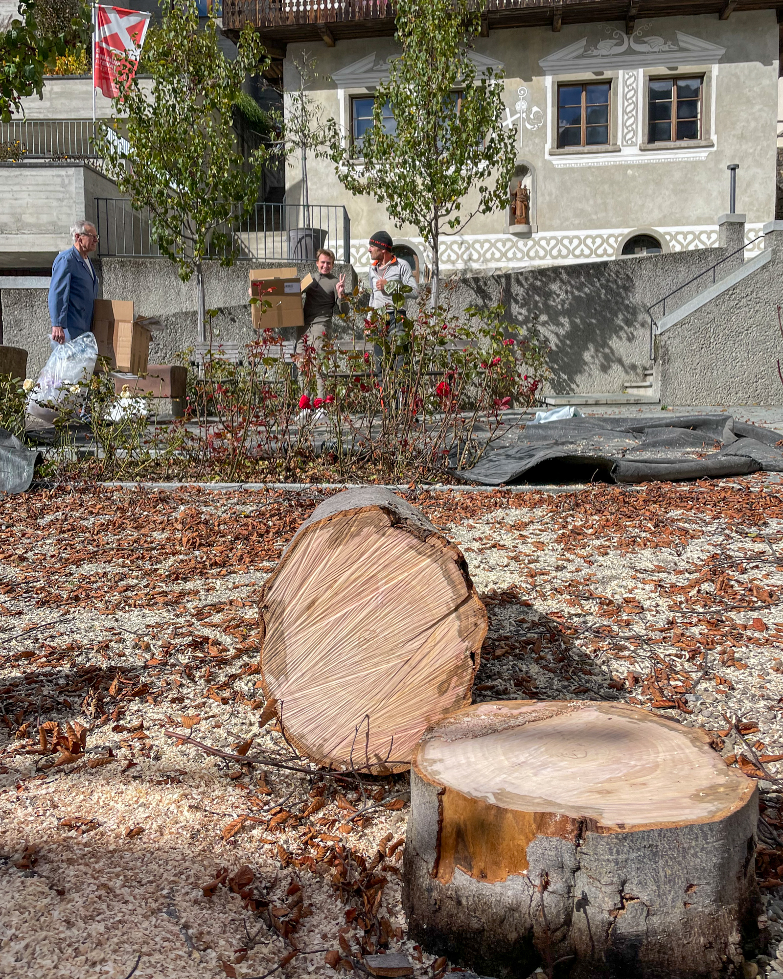 Damit ist der Pfortenplatz jetzt wieder «komplett» und wir freuen uns über den neuen Schattenspender vor unserem Kloster.
