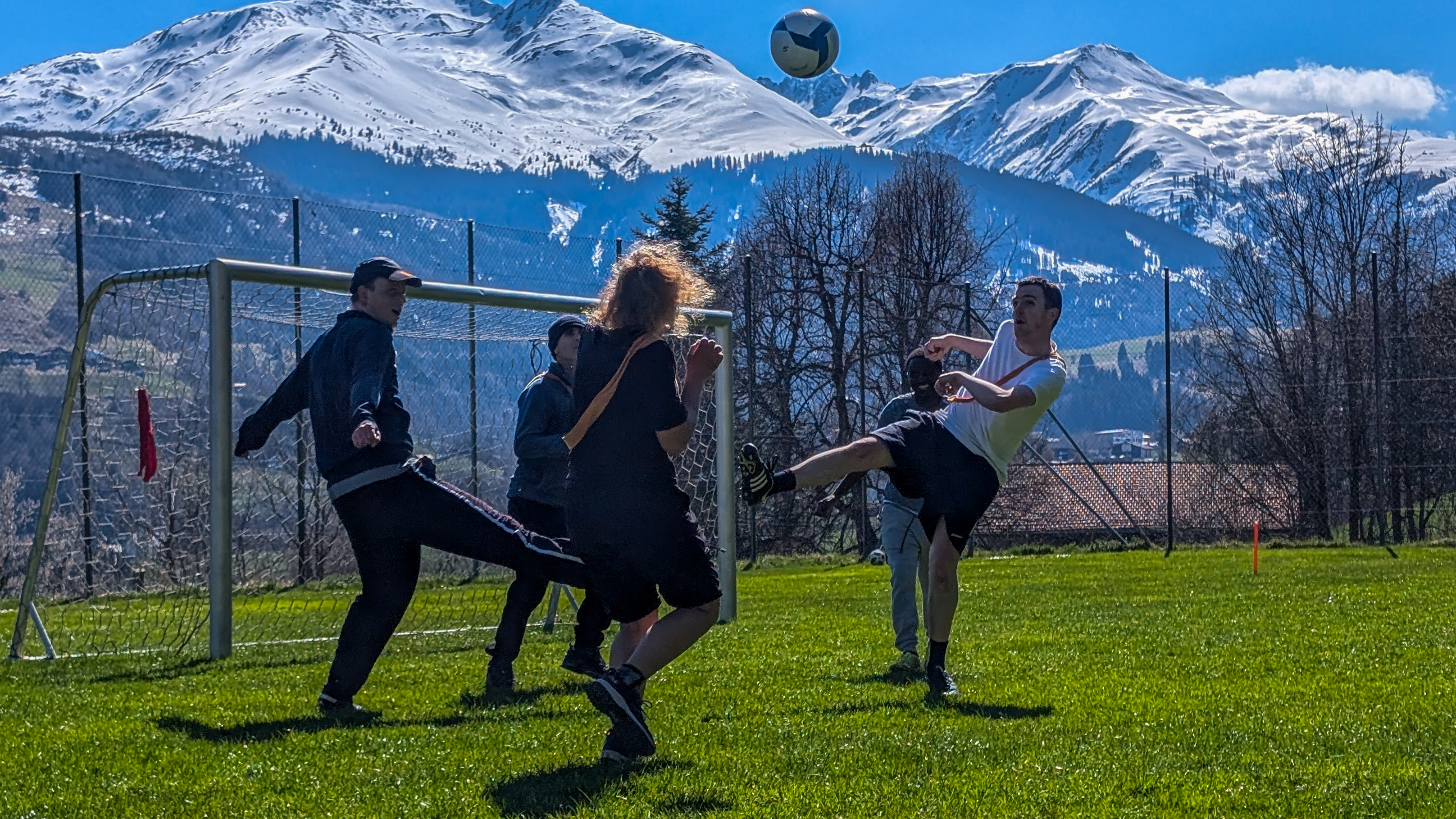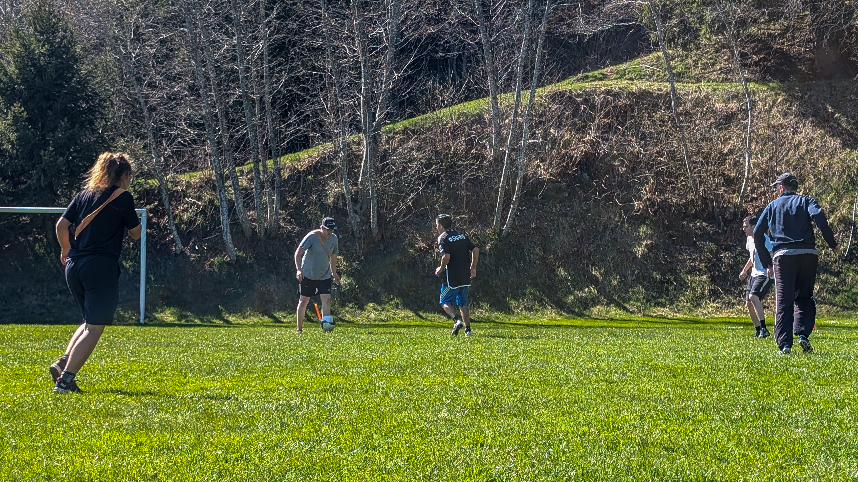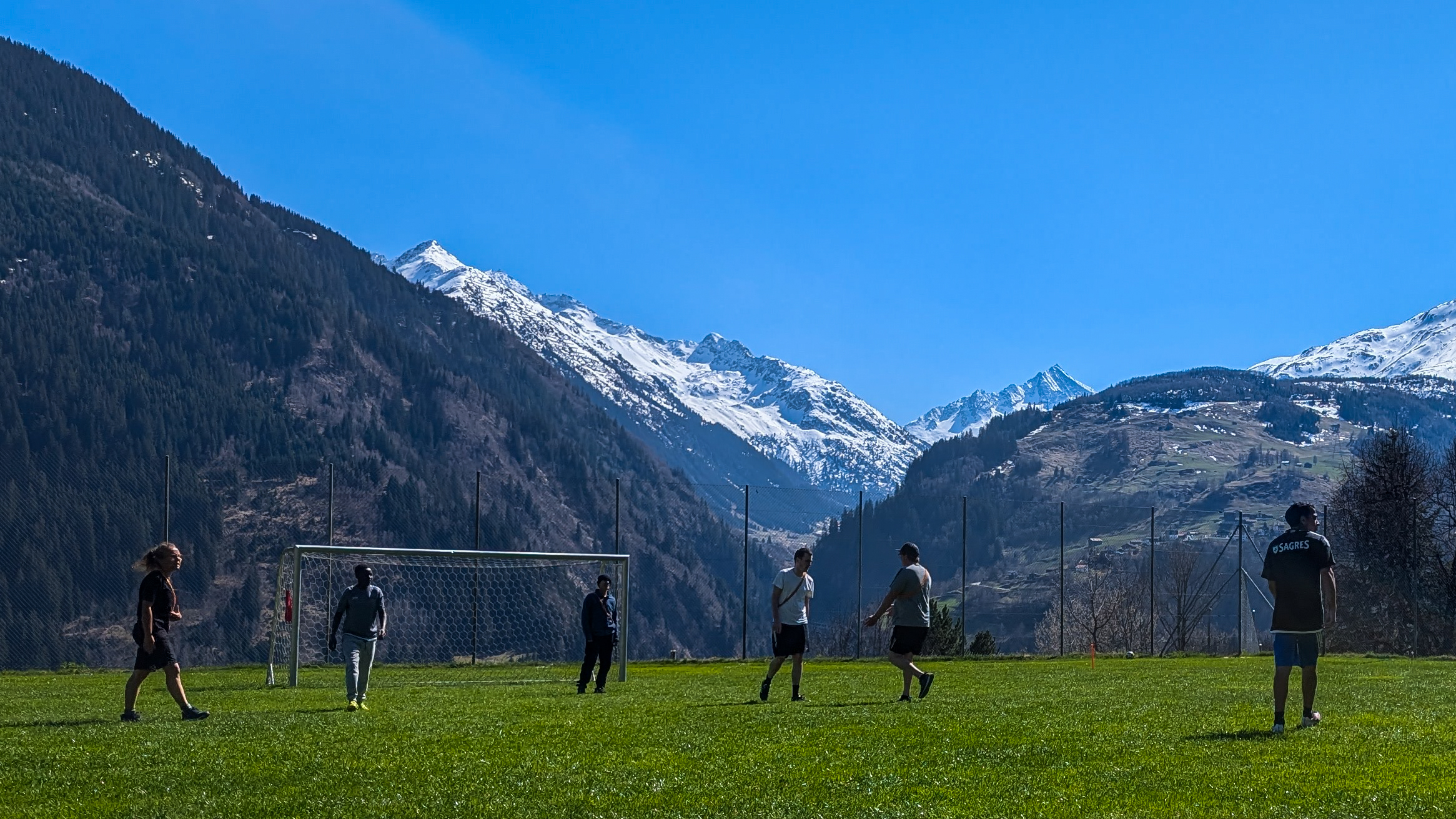 Nach dem Filmnachmittag Anfang März stand diesmal Fussball auf dem Programm – auf dem vielleicht schönsten Fussballplatz Graubündens.
