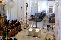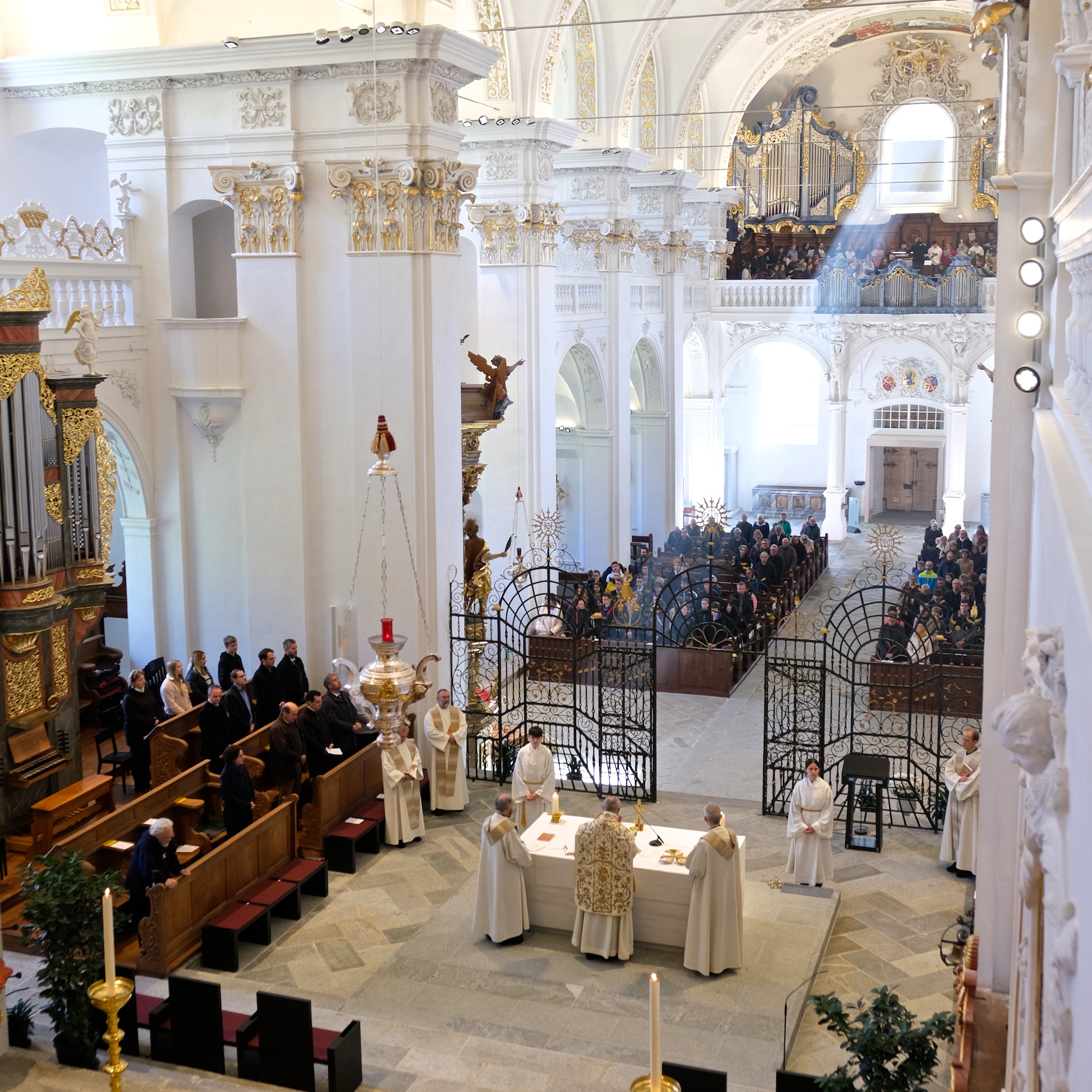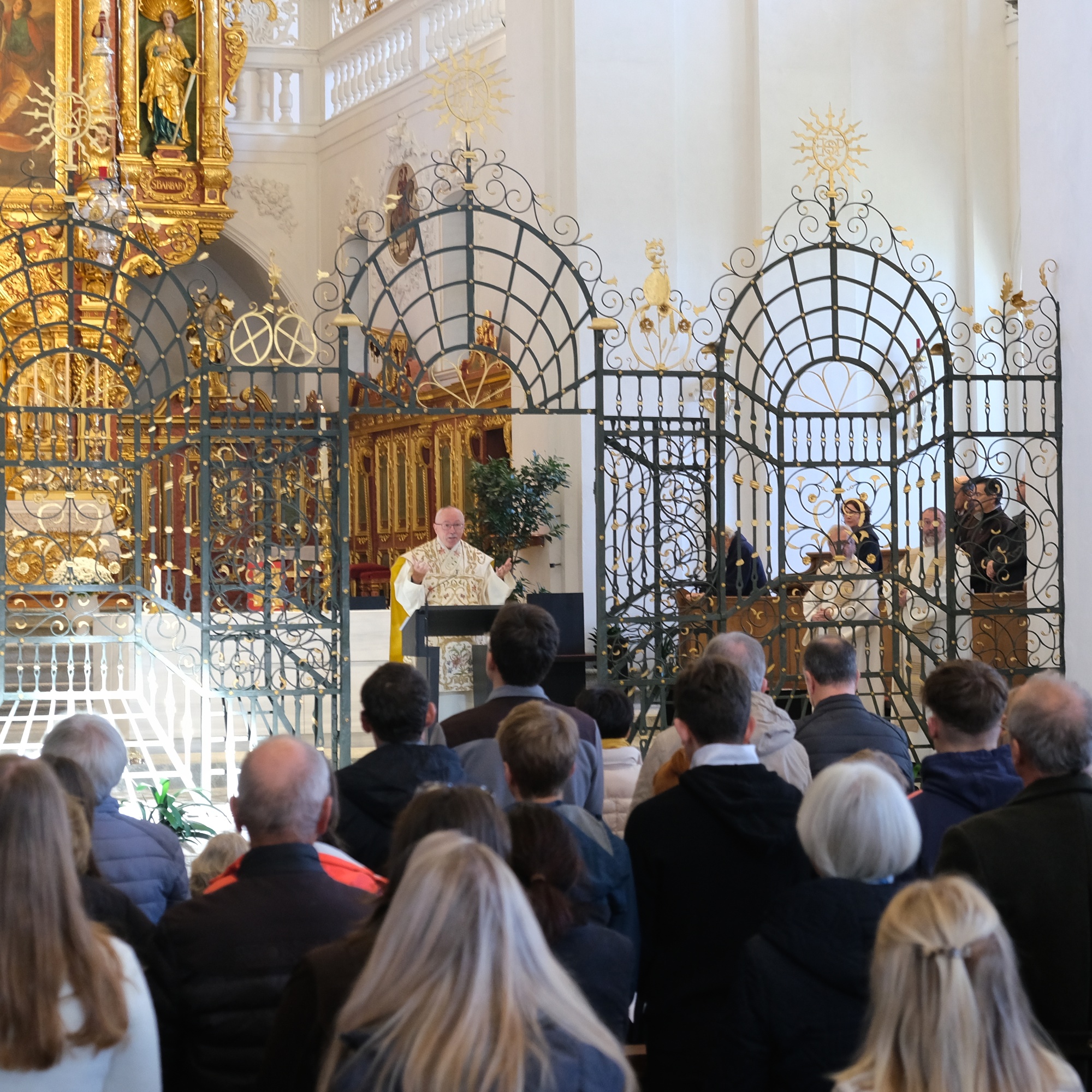 Die Feier zelebrierte in Vertretung für Abt Vigeli Monn diesmal Pater Bruno Rieder, die Predigt hielt Pater Pirmin Gnädinger. Er griff dabei das Bild des Mantesl im Zusammenhang mit den aktuellen Massnahmen zum Energiesparen auf. Begleitet wurde das Pontifikalamt durch den Chor des Gymnasium & Internat Kloster Disentis.
