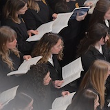 Zum Ensemble mit dem Chor unter der Leitung von Clau Scherrer gehörten die Solistin Salome Cavegn, Sopran (G2013 – M2019), ein Orchester und die zwei Gastchöre «PiCant» und «DeCanto».