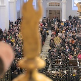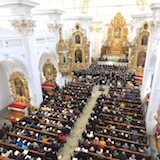 «Dieses Konzert setzt ein Zeichen der Hoffnung», so Abt Vigeli Monn in seiner Begrüssung. «Es ist ein Aufruf zum Frieden auf der ganzen Welt – und besonders in der Ukraine.» «The Armed Man: A Mass for Peace» zeige den Schrecken und die Leiden, die der Krieg bringe, so Abt Vigeli weiter, «aber es endet mit der Einsicht, dass Frieden besser ist als Krieg und dass Gott alle Tränen wegwischt. Möge Gott uns und der ganzen Welt seinen Frieden schenken.»