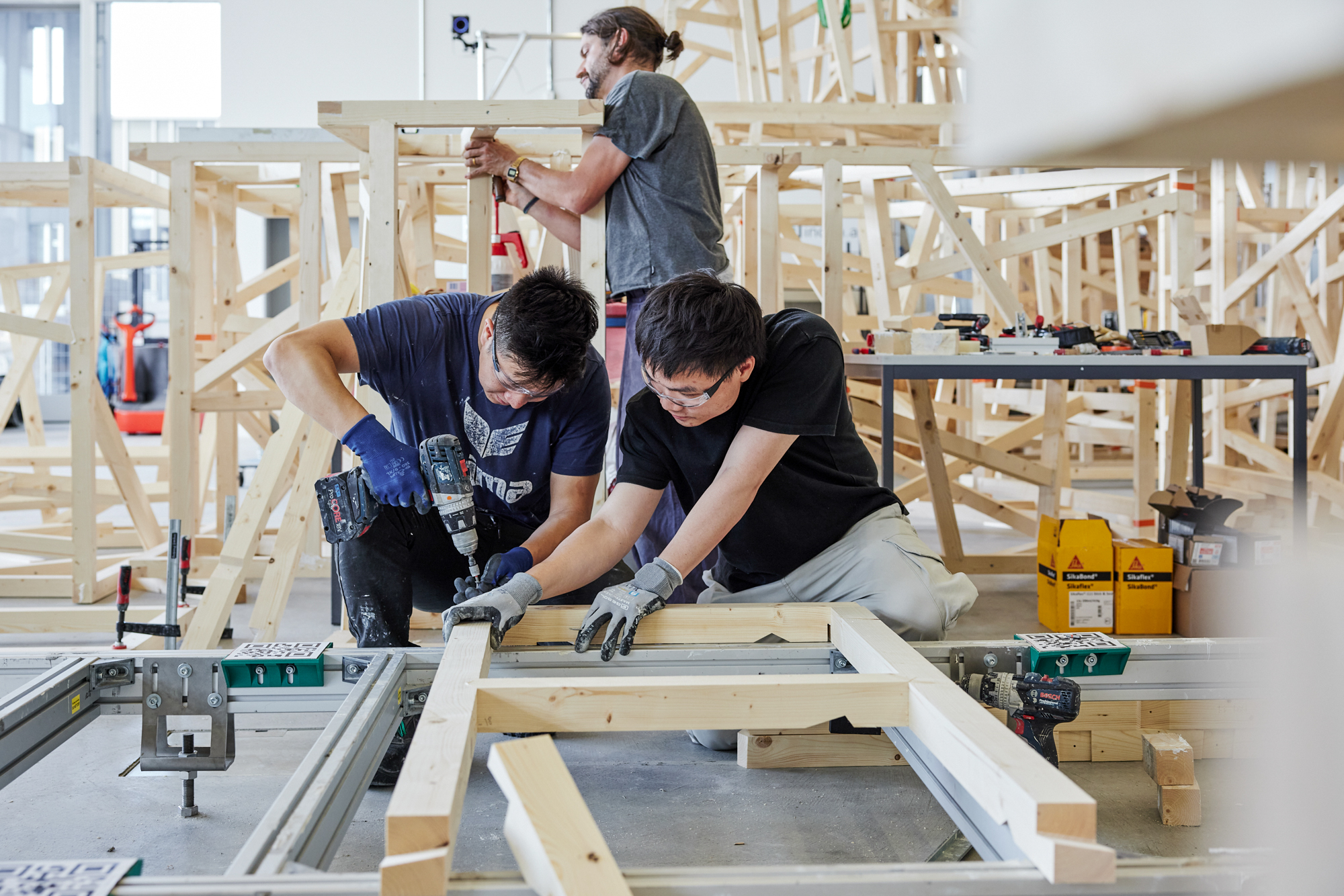 Im Detail geplant und umgesetzt wird das Projekt von 17 internationalen Studentinnen und Studenten der Forschungsabteilung Gramazio Kohler Research des Weiterbildungslehrgangs Digitale Fabrikation im Robotic Fabrication Lab der ETH. Ziel sei, das Beste aus zwei Welten zu vereinen: Präzision von Robotik mit Geschicklichkeit von Handwerk. Federführend dabei ist auch der an der ETH tätige indische Architekt Ananya Kango. Sein Ansprechpartner vor Ort ist der junge einheimische Architekt und ehemalige ETH-Assistent Ursin Huonder (G2001 – M2005).