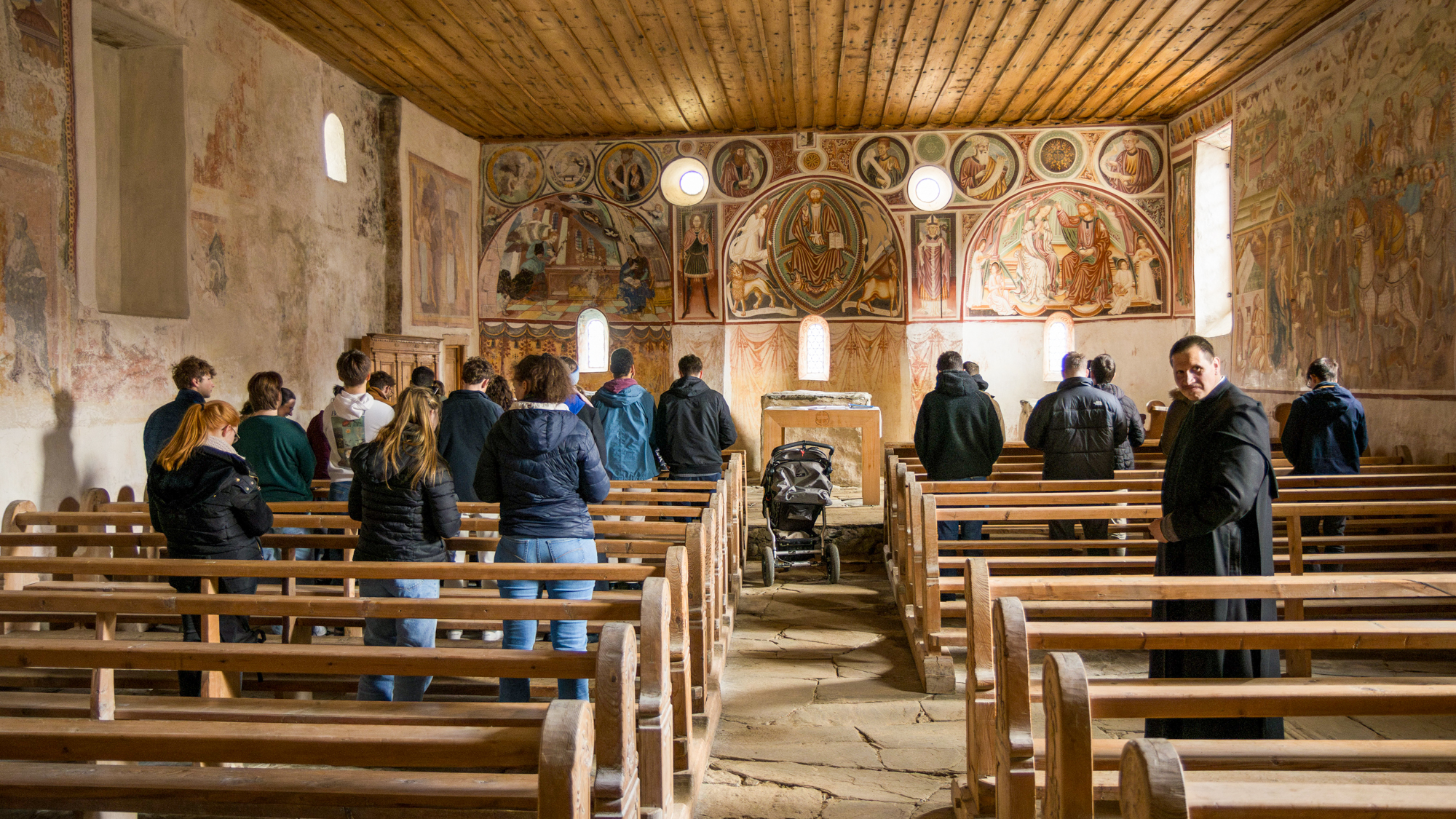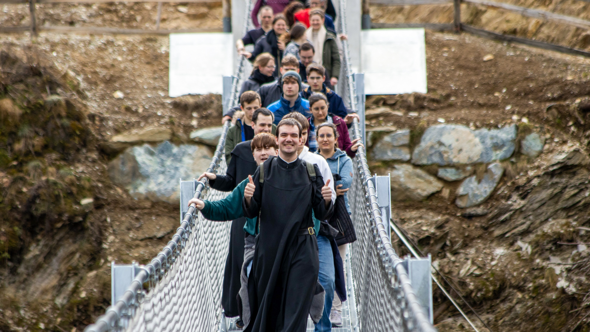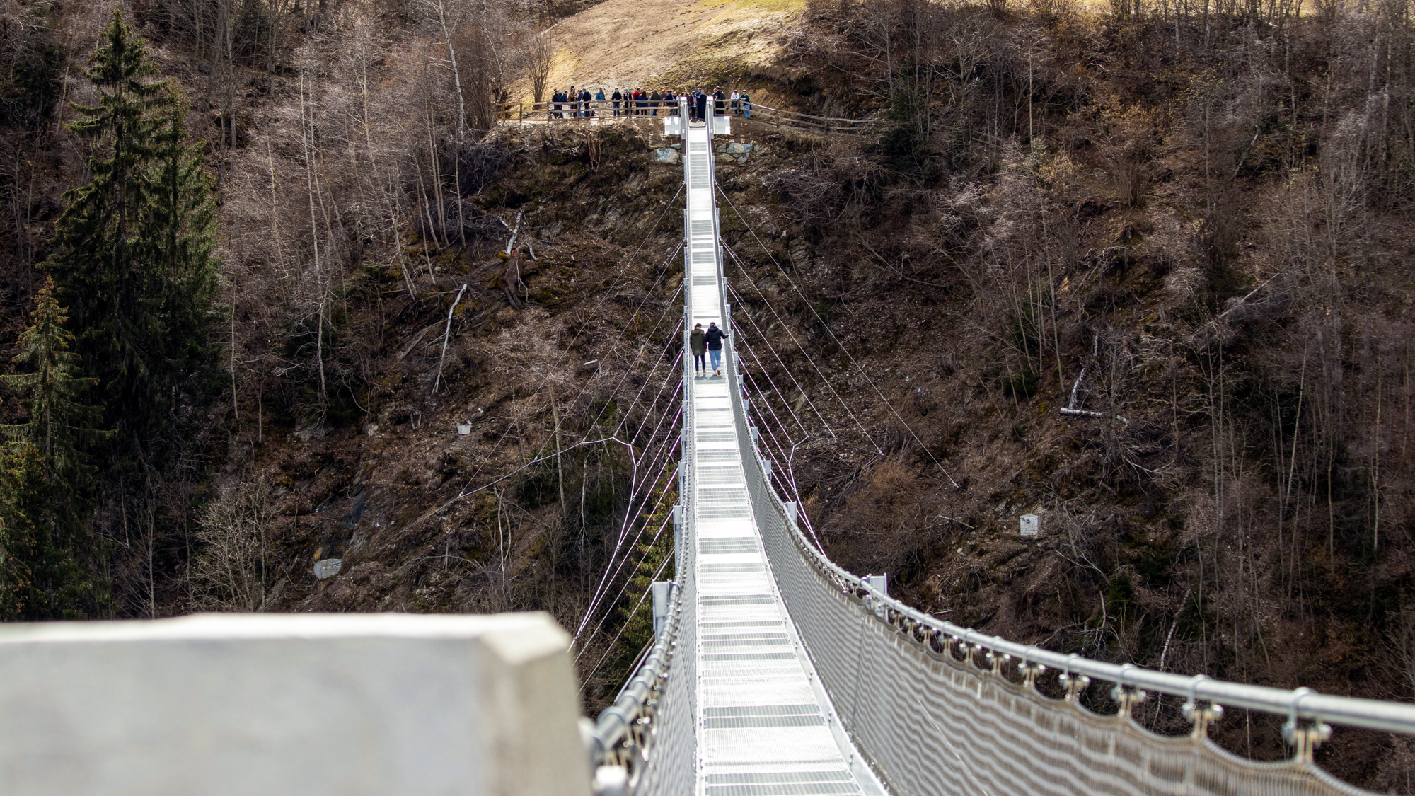 Traditionell ist die Kapelle Sontga Gada das Ziel eines Spaziergangs im Rahmen der Vertiefungswochenenden – nun kombiniert mit einem Besuch auf der derzeit längsten Hängebrücke in Graubünden, die über den Rhein in den Hang unterhalb des Weilers Mumpé Medel führt.