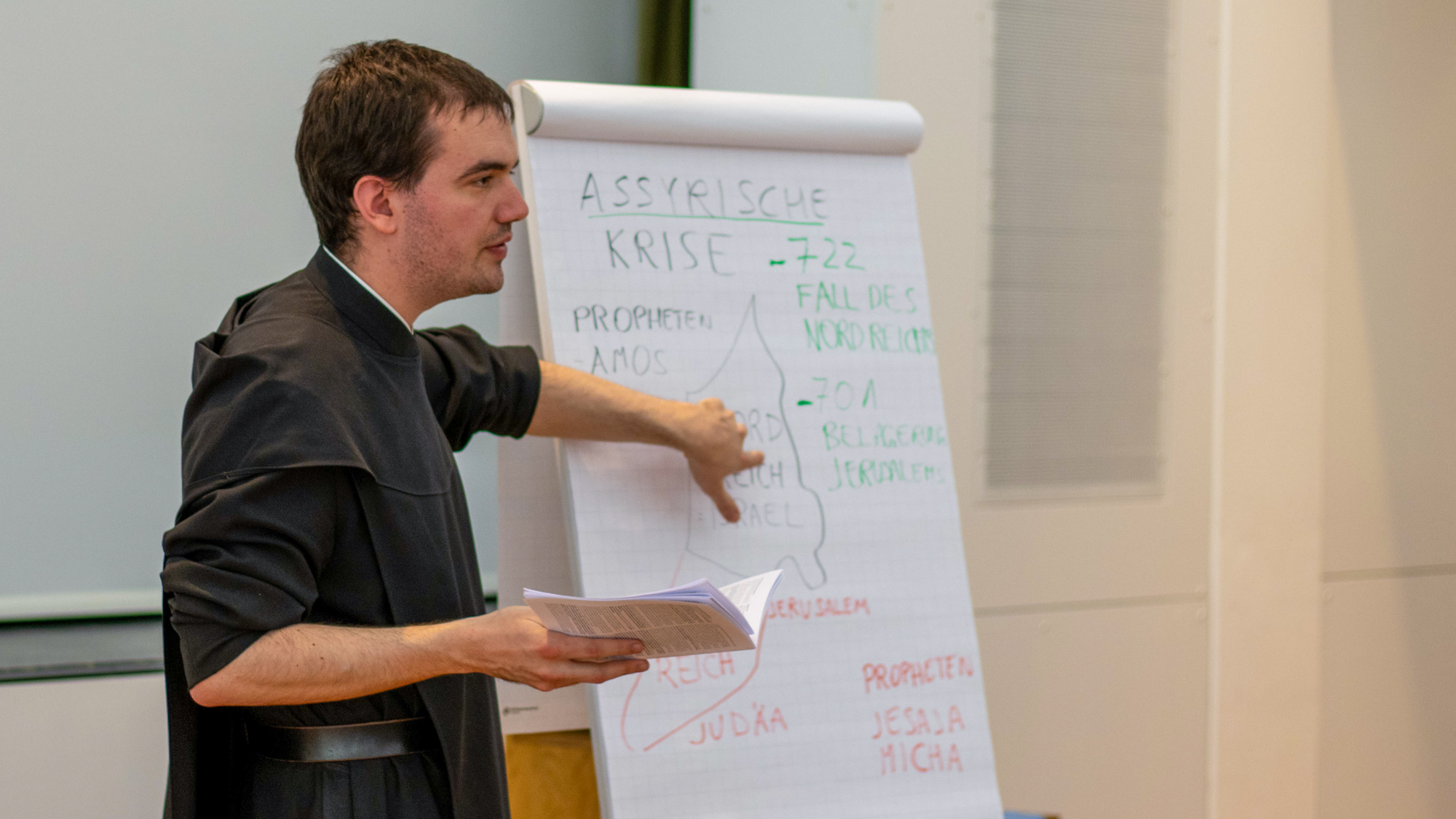 «Wir haben vier Propheten studiert, die in der Zeit der assyrischen Krise, um 722 vor Christus, gelebt haben», erläutert Bruder Laurentius Sauterel, der die Vertiefungswochenenden vorbereitet und begleitet. «Ausser um Amos, Osea, Jesaja und Micha ging es aber auch um Zefanja, Nahum und Habakuk, drei Propheten der Zeit vor dem babylonischen Exil von 574 vor Christus.»
