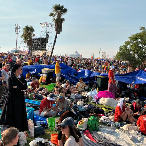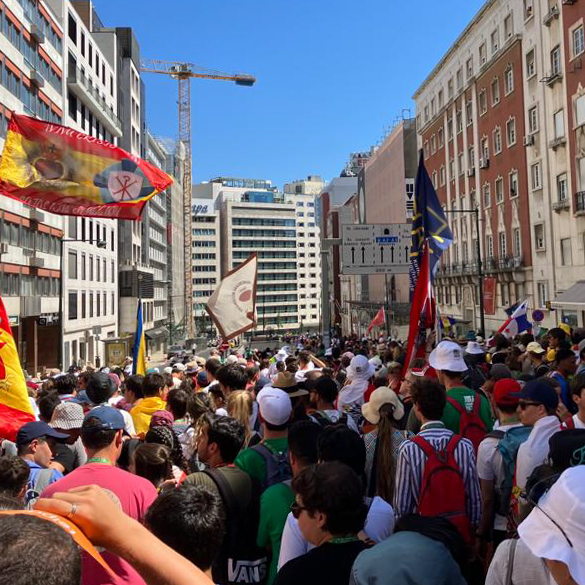 Höhepunkt war das Wochenende mit Festival- und Abendprogramm sowie sonntäglichem Schlussgottesdienst mit Papst Franziskus, auf dem grossen «Campo da Graça» ausserhalb von Lissabon. Die Anreise erfolgte zu Fuss auf gefluteten Strassen, mit Flaggen, Gesängen, Fröhlichkeit, Wartezeiten, grosser Logistik und südländischer Hitze. Papst Franziskus thematisierte besonders das Thema «aufstehen», hinausgehen, als Christ, und dass man dabei nichts fürchtet.