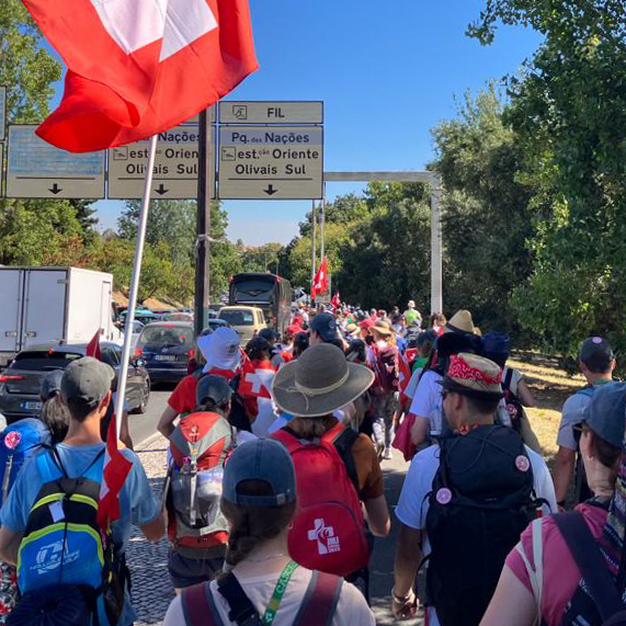 «Weltjugendtag, das ist, kurz gesagt, ein riesiges Erfahren, Teilen und Feiern des Glaubens, auf junge Menschen zugeschnitten, und zwar als Anlass von mindestens einer Woche. Ein Gastgeber-Land und eine Gastgeber-Stadt beherbergen gläubige junge Menschen aus der ganzen Welt. Und das in Scharen: 1.5 Millionen junge Menschen waren es beim Höhepunkt, dem Schlussgottesdienst mit Papst Franziskus, auf dem grossen «Campo da Graça», im Parque Tejo – Trancão.