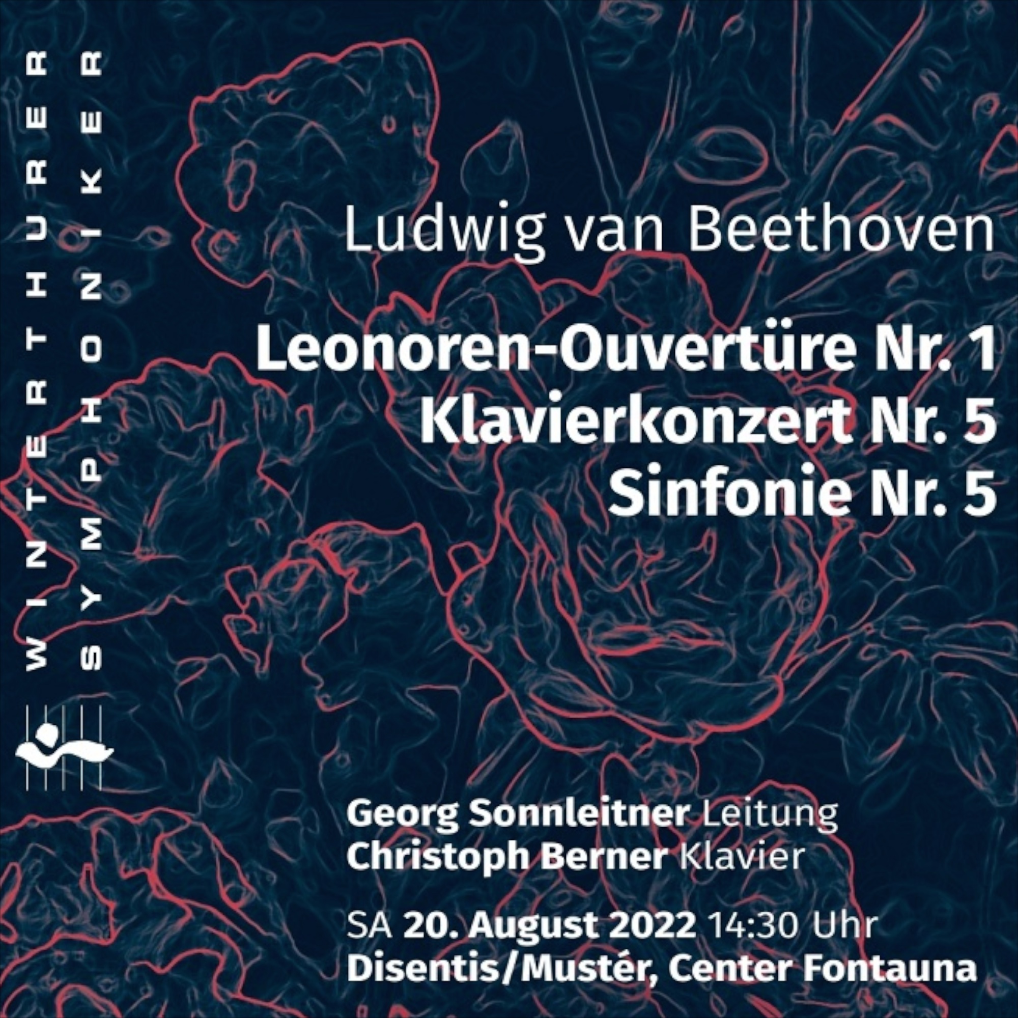 Zum Abschluss ihres Aufenthaltes gibt es am Samstag, 20. August, auch einen Auftritt. Das Konzert findet im Center Fontauna statt und beginnt um 14.30 Uhr. Auf dem Programm steht Ludwig van Beethoven mit der Leonoren-Ouvertüre Nr. 1, dem Klavierkonzert Nr. 5 und der Sinfonie Nr. 5, die als eines der bedeutendsten Werke aus der sogenannten «heroischen Phase» Beethovens gilt. Die Sinfonie wurde 1808 komponiert, im gleichen Jahr in Wien uraufgeführt und geniesst bis heute eine grosse Popularität. Dirigent ist Georg Sonnleitner, Solist ist Christoph Berner, Klavier. Der Eintritt ist frei, es wird um eine Kollekte gebeten.