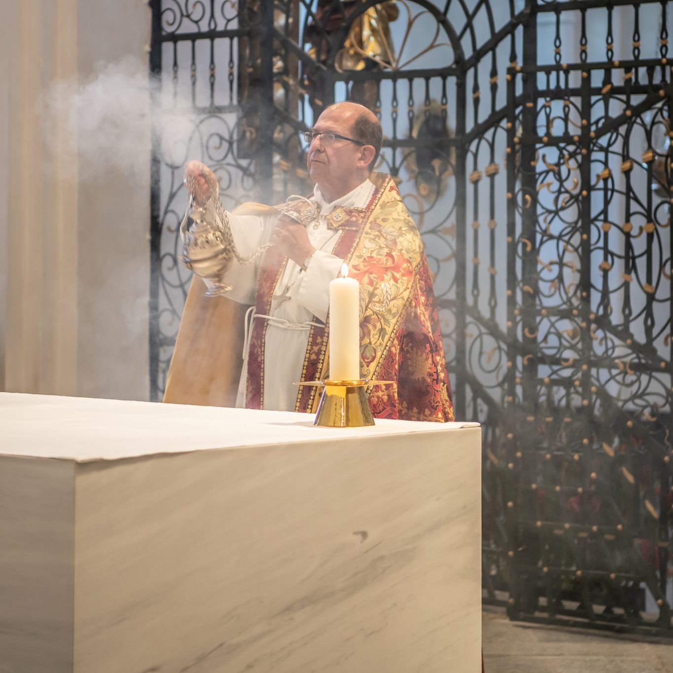Zum Abschluss der Komplet besprengt der Abt die Betenden mit Weihwasser, um den Segen des Herrn für die Mitbrüder und Gäste zu erbitten. Ab diesen Moment beginnt für uns im Kloster die Nachtruhe, die sogenannte «Silentium nocturnum». In dieser ist es dem Mönch nicht erlaubt zu reden.