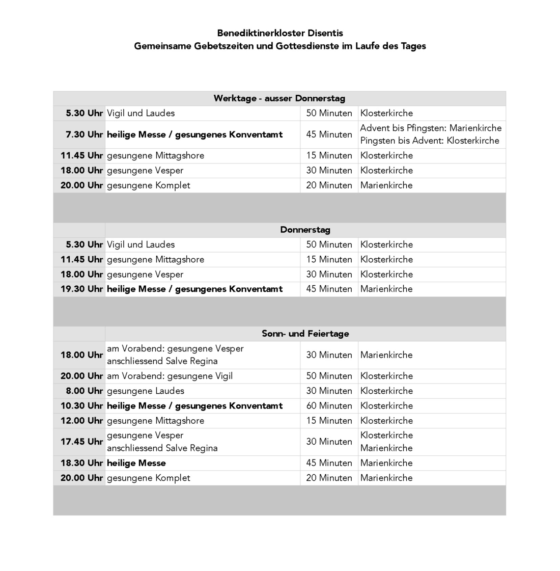 Die unten stehenden gemeinsamen Gebets- und Gottesdienstzeiten können Sie hier als pdf herunterladen.